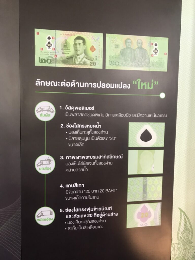 นายเศรษฐพุฒิ สุทธิวาทนฤพุฒิ ผู้ว่าการธนาคารแห่งประเทศไทย (ธปท.) เปิดเผยว่า ธปท. จะออกใช้ธนบัตรชนิดราคา 20 บาท ที่เปลี่ยนวัสดุการพิมพ์เป็นพอลิเมอร์ เพื่อพัฒนาคุณภาพให้ประชาชนได้ใช้ธนบัตรที่มีสภาพใหม่ สะอาด และใช้งานได้นานขึ้น เนื่องจากธนบัตรชนิดราคา 20 บาท เป็นธนบัตรที่ประชาชนใช้จ่ายมากที่สุด โดยมีการพิมพ์ธนบัตรใบละ 20 บาทออกมาใช้มากที่สุดถึง 600 ล้านใบ จากจำนวนธนบัตรทั้งสิ้น 1,800 ล้านใบ ทำให้มีการหมุนเวียนเปลี่ยนมือบ่อย ส่งผลให้ธนบัตรมีสภาพเก่ากว่าธนบัตรชนิดราคาอื่น