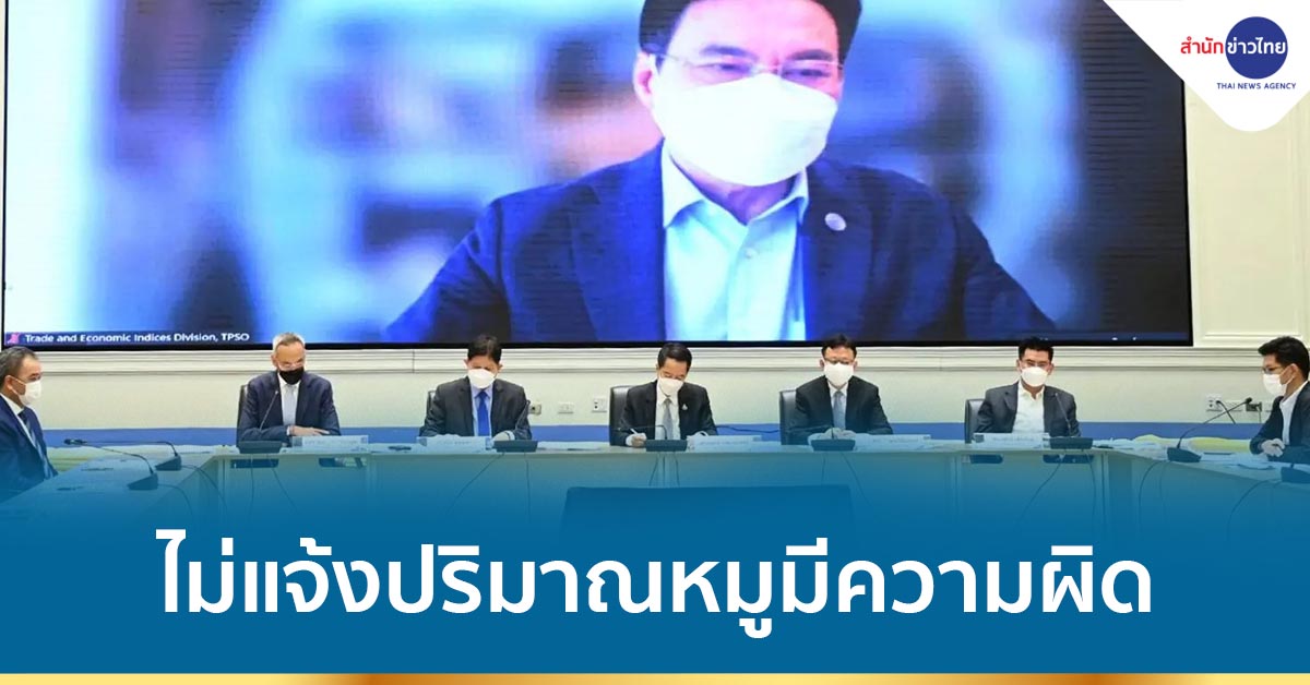 นนทบุรี 21 ม.ค.- รมว.พาณิชย์ได้รับรายงานจากผู้ว่าฯ สงขลา กรณีพบห้องเย็นเก็บเนื้อหมูกว่า 2 แสน กก. อาจเข้าข่ายความผิดไม่แจ้งสตอก ย้ำเตือนเอกชนจะต้องทำตามประกาศ กกร. ต้องแจ้ง หากไม่แจ้งปริมาณเนื้อหมูผิดตามกฎหมายได้