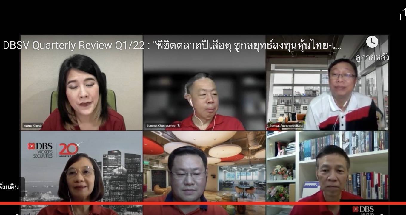 นางสาวอาภาภรณ์ แสวงพรรค ผู้อำนวยการบริหาร ฝ่ายวิจัยหลักทรัพย์ บล. ดีบีเอส วิคเคอร์ส (ประเทศไทย) จำกัด กล่าวว่าทิศทางการลงทุนในตลาดหุ้นปี 2565 ดัชนีหุ้นยังมีโอกาสปรับตัวเพิ่มขึ้นต่อเนื่อง โดยเป้าหมายดัชนีหุ้นอยู่ที่ 1800 จุด เพิ่มขึ้น 9% เมื่อเทียบกับดัชนีหุ้นปิดสิ้นปี 2564 อยู่ที่ 1658 จุด อิงกับ EPS growth ที่ 9% และ P/E 19.4 เท่า (เท่ากับระดับปิดสิ้นปี 2564)