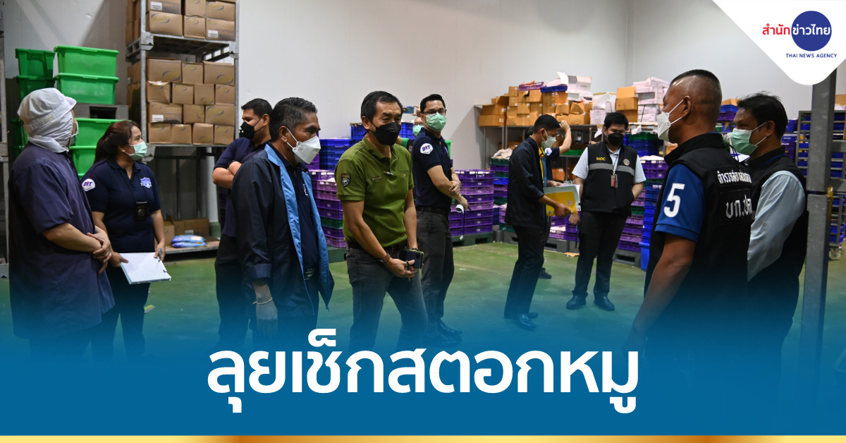 ปทุมธานี 22 ม.ค.-รองอธิบดีกรมการค้าภายใน ร่วมกับหน่วยงานที่เกี่ยวข้อง ลุยเช็กสตอกหมูตามห้องเย็น ย่านลำลูกกา จ.ปทุมธานี เบื้องต้นไม่ผิดปกติ ย้ำขอให้ทุกห้องเย็นเตรียมข้อมูลแล้วแจ้งให้ส่วนราชการทราบ ไม่เช่นนั้นผิดกฎหมาย