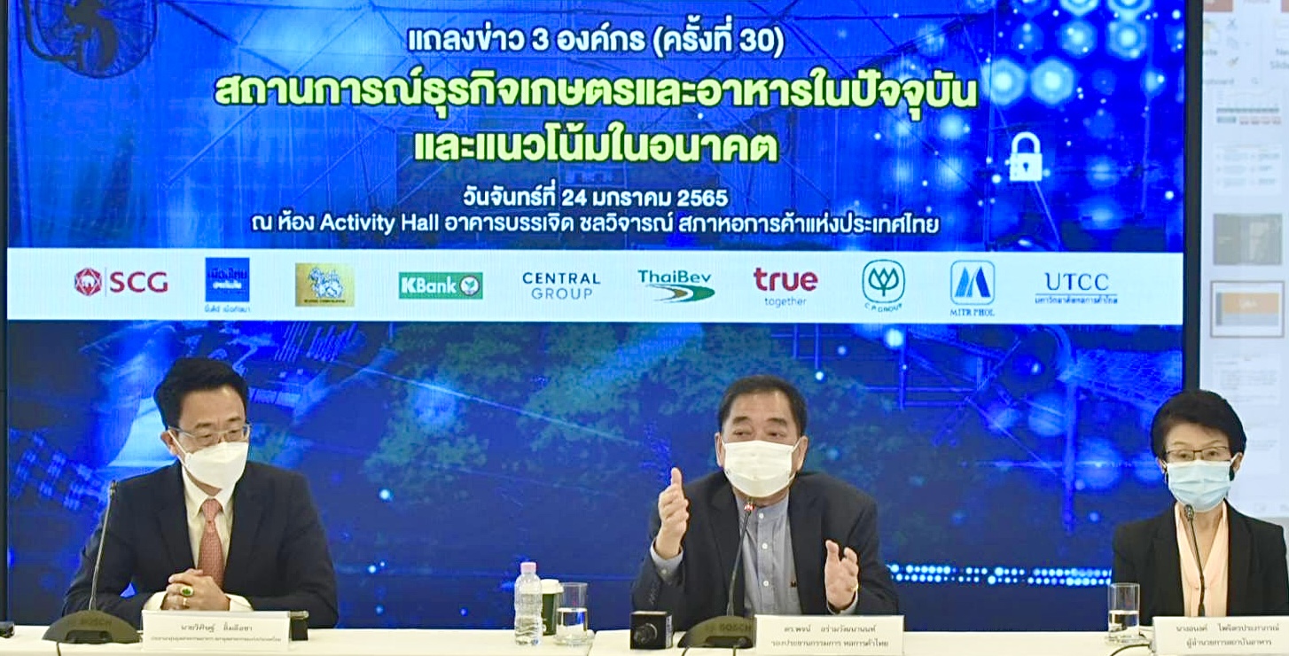 หอการค้าไทยและสภาหอการค้าแห่งประเทศไทย สถาบันอาหาร และสภาอุตสาหกรรมแห่งประเทศไทยเผยข้อมูลอุตสาหกรรมอาหารของไทยปี 2564 และแนวโน้มปี 2565 โดยมีผู้แทนทั้ง 3 องค์กรร่วมแถลงข่าว ประกอบด้วย นายพจน์ อร่ามวัฒนานนท์ รองประธานกรรมการ สภาหอการค้าแห่งประเทศไทย นางอนงค์ ไพจิตรประภาภรณ์ ผู้อำนวยการสถาบันอาหาร หน่วยงานเครือข่ายกระทรวงอุตสาหกรรม และนายวิศิษฐ์ ลิ้มลือชา ประธานกลุ่มอุตสาหกรรมอาหาร สภาอุตสาหกรรมแห่งประเทศไทย