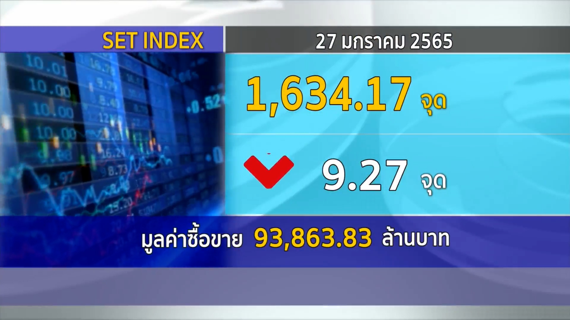 กทม. 27 ม.ค.- ตลาดหลักทรัพย์ ปิดวันนี้ที่ระดับ 1,634.17 จุด ลดลง 9.27 จุด (-0.56%) มูลค่าการซื้อขาย 93,866.98 ล้านบาท รับผลเฟดส่งสัญญาณขึ้นดอกเบี้ยเร็วและแรง ลุ้นพรุ่งนี้รีบาวด์