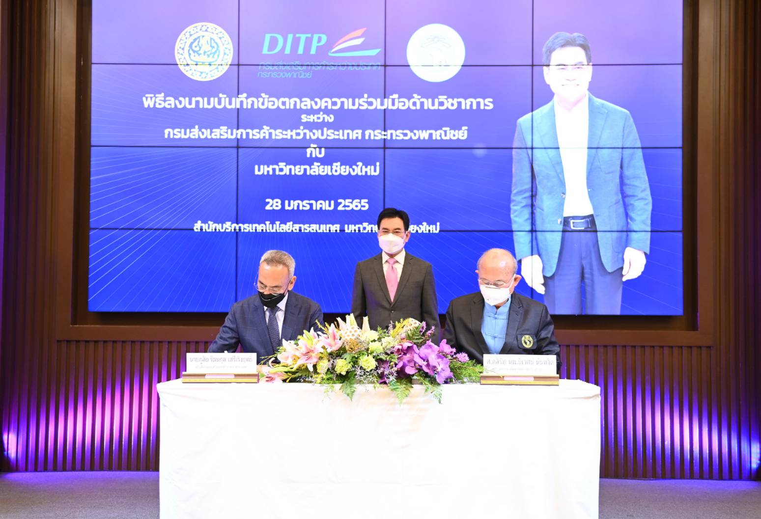 นายจุรินทร์ ลักษณวิศิษฎ์ รองนายกรัฐมนตรีและรัฐมนตรีว่าการกระทรวงพาณิชย์ เป็นประธานในพิธีลงนามข้อตกลงความร่วมมือด้านวิชาการระหว่างกรมส่งเสริมการค้าระหว่างประเทศกับมหาวิทยาลัยเชียงใหม่ ภายใต้โครงการปั้น Gen Z เป็น CEO พร้อมด้วยนายบุณย์ธีร์ พานิชประไพ เลขานุการรัฐมนตรีว่าการกระทรวงพาณิชย์ นายภูสิต รัตนกุล เสรีเริงฤทธิ์ อธิบดีกรมส่งเสริมการค้าระหว่างประเทศ ศาสตราจารย์คลินิก นายแพทย์นิเวศน์ นันทจิต อธิการบดีมหาวิทยาลัยเชียงใหม่ และคณะผู้บริหารระดับสูงกระทรวงพาณิชย์ ที่มหาวิทยาลัยเชียงใหม่ จังหวัดเชียงใหม่