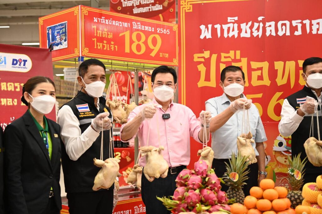 นายจุรินทร์ ลักษณวิศิษฎ์ รองนายกรัฐมนตรีและรัฐมนตรีว่าการกระทรวงพาณิชย์ ตรวจเยี่ยมการจําหน่ายสินค้าราคาพิเศษในช่วงเทศกาลตรุษจีน และผู้บริหารที่เกี่ยวข้อง โดยได้นำคณะมาตรวจห้างแม็คโคร โลตัส บิ๊กซี จากการติดตามสถานการณ์ของกระทรวงพาณิชย์ ซึ่ง 3 ห้างนี้จะเป็นตัวชี้วัดราคาสินค้าอุปโภคบริโภคจะไปทางไหนอย่างไร โดยราคาหมวดเครื่องใช้ไฟฟ้า ไม่ขึ้นราคาทั่วประเทศ หมวดซอสปรุงรสไม่ขึ้นราคา ส่วนที่บิ๊กซีกลับลดราคา บะหมี่กึ่งสำเร็จรูป ไม่มีการขึ้นราคา 4.หมวดน้ำอัดลม ไม่มีการปรับขึ้นราคาขึ้น5.หมวดราคาอาหารสดเพื่อการบริโภค เช่น ไข่ไก่คละฟองละไม่เกิน 2.90 บาทที่หน้าฟาร์ม ส่งผลให้ไข่เบอร์ 3 ไม่เกินฟองละ 3.50 บาท ที่นี่ขายฟองละ 3.30 บาท เป็นไปตามที่กำกับควบคุมไว้ และไก่ประกาศเป็นสินค้าควบคุมและกำหนดราคามาตรฐานไว้ ไก่เป็นหน้าฟาร์ม ไม่เกินกิโลกรัมละ 40 บาทตอนนี้เหลือกิโลกรัมละ 37-39 บาท เนื้อไก่บริโภคที่ตกลงไว้กับ 3 ห้าง แม็คโคร โลตัสและบิ๊กซี อยู่ในระดับราคาควบคุม ไก่เป็นทั้งตัวไม่เกิน 60-65 บาทต่อกิโลกรัม น่องติดสะโพกกิโลกรัมละ 60-65 บาท หน้าอกไก่ ไม่เกิน 70-75 บาทต่อกิโลกรัม ถือว่าไก่ราคาไม่สูงหรือมีการฉวยโอกาส โดยตลาดหลายที่ก็อยู่ในเกณฑ์เดียวกับแม็คโคร โลตัสและบิ๊กซี