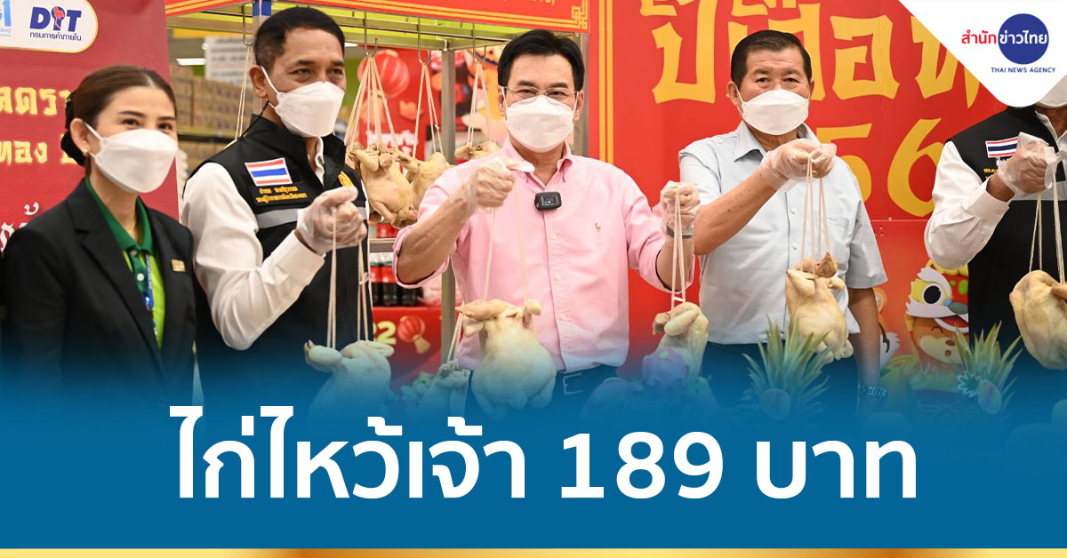 อย่างไรก็ตาม วันนี้มาจัดโครงการไก่ต้มไหว้เจ้า 189 บาท เป็นโครงการที่ร่วมมือกันระหว่างกระทรวงพาณิชย์กับ 4 ห้างสำคัญ แม็คโครโลตัส บิ๊กซีและท็อปส์ ซุปเปอร์มาร์เก็ต ขายไก่ต้มไหว้เจ้าตัวละ 189 บาท ขนาดน้ำหนัก 1.4-1.7 กิโลกรัมต่อตัว ประมาณ 100,000 ตัวทั่วประเทศ และหากไม่พอจะผลิตเพิ่ม กระจายขายอยู่ในสาขาทั่วประเทศ 710 สาขา จะช่วยแบ่งเบาภาระของคนไทยเชื้อสายจีนที่ซื้อไก่ไหว้เจ้าในราคาที่ไม่แพง