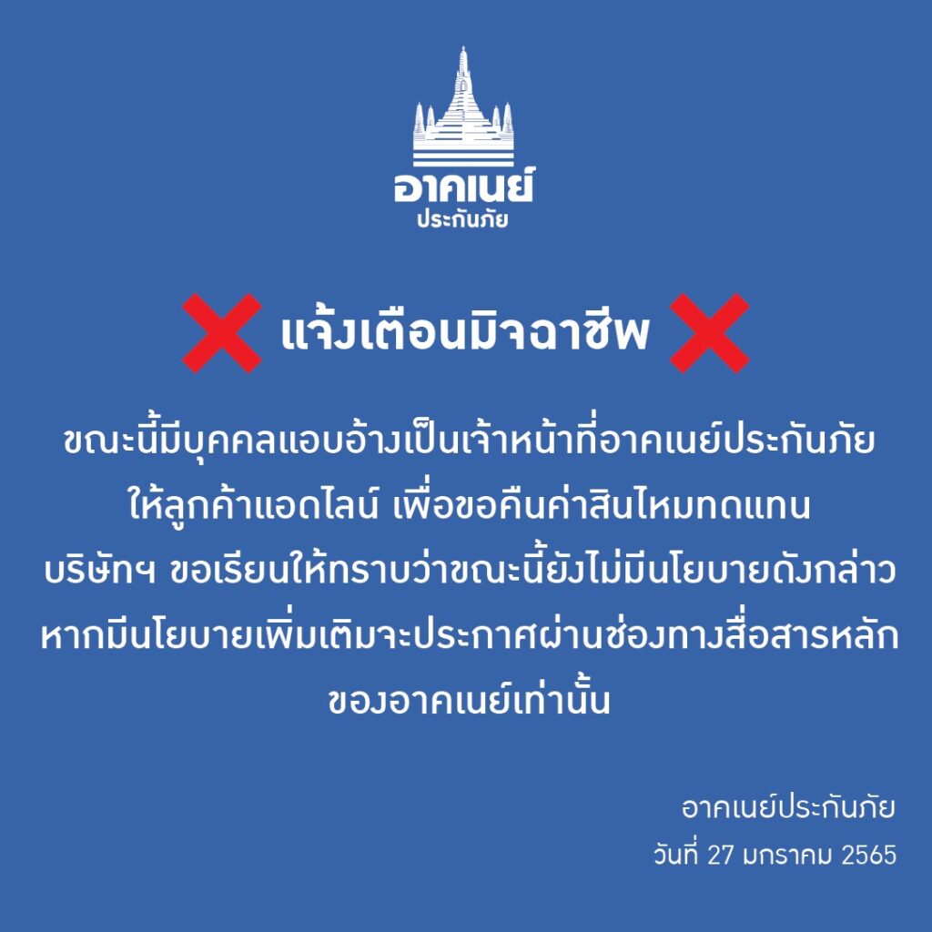 ด้าน อาคเนย์ประกันภัย แจ้งว่า สืบเนื่องจากบริษัท อาคเนย์ประกันภัย จำกัด (มหาชน) และบริษัท ไทยประกันภัย จำกัด (มหาชน) ได้นำเสนอแนวทาง เพื่อดูแลผลประโยชน์สูงสุดแก่ผู้เอาประกันภัยทุกกลุ่ม ในขณะที่บริษัทยังคงมีความมั่นคงเพียงพอ ซึ่งที่ประชุมคณะกรรมการสำนักงานคณะกรรมการกำกับและส่งเสริมการประกอบธุรกิจประกันภัย (คปภ.) ได้รับคำขอคืนใบอนุญาตประกอบธุรกิจประกันวินาศภัยของบริษัทแล้ว เมื่อวันที่ 28 มกราคม 2565 ซึ่งหากคณะกรรมการ คปภ. อนุญาตให้บริษัทเลิกประกอบธุรกิจประกันวินาศภัยแล้ว จะส่งผลให้บริษัทปิดการดำเนินงานทันที