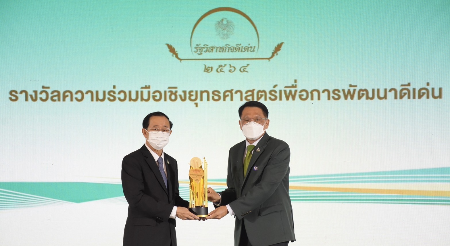 2) รางวัลความร่วมมือเชิงยุทธศาสตร์เพื่อการพัฒนาดีเด่น ประเภทดีเด่น เกิดจากการดำเนินงานโครงการส่งเสริมศักยภาพและสนับสนุนผู้ประกอบการวิสาหกิจขนาดกลางและขนาดย่อม (SMEs) ระหว่าง ธ.ก.ส. สถาบันวิจัยวิทยาศาสตร์และเทคโนโลยีแห่งประเทศไทย (วว.) และธนาคารเพื่อการส่งออกและนำเข้าแห่งประเทศไทย (ธสน.) ภายใต้แนวคิดการบ่มเพาะด้วยการถ่ายทอดมาตรฐานสินค้าสู่เกษตรกร การยกระดับสู่มาตรฐานสากลด้วยนวัตกรรม การต่อยอดสินค้าไทยสู่ตลาดโลก เพื่อสร้างความเข้มแข็งให้กับผู้ประกอบการ SMEs เกษตร สามารถเจริญเติบโตทางธุรกิจอย่างมั่นคง ด้วยการยกระดับมาตรฐานการผลิตสินค้าสู่ระดับสากล และเชื่อมโยงสินค้าไปสู่ต่างประเทศ โดยผู้ประกอบการ SMEs เกษตร จะเป็นหัวขบวนสำคัญในการปฏิรูปภาคการเกษตร และขับเคลื่อนเศรษฐกิจตามยุทธศาสตร์ของประเทศไทยที่ต้องการลดความเหลื่อมล้ำเป็นแหล่งสร้างรายได้ให้กับเกษตรกรรายย่อยในรูปแบบต่าง ๆ อาทิ การจ้างแรงงานเพื่อสนับสนุนการผลิต การรับซื้อผลผลิตทางการเกษตรจากเกษตรกรรายย่อย ซึ่งช่วยสนับสนุนให้เกิดการหมุนเวียนและเติบโตของกิจกรรมทางเศรษฐกิจภายในชุมชนให้สามารถพึ่งพาตนเองได้ อันเป็นรากฐานสำคัญในการสร้างให้สังคมมีความเข้มแข็ง และมีการเติบโตอย่างยั่งยืน