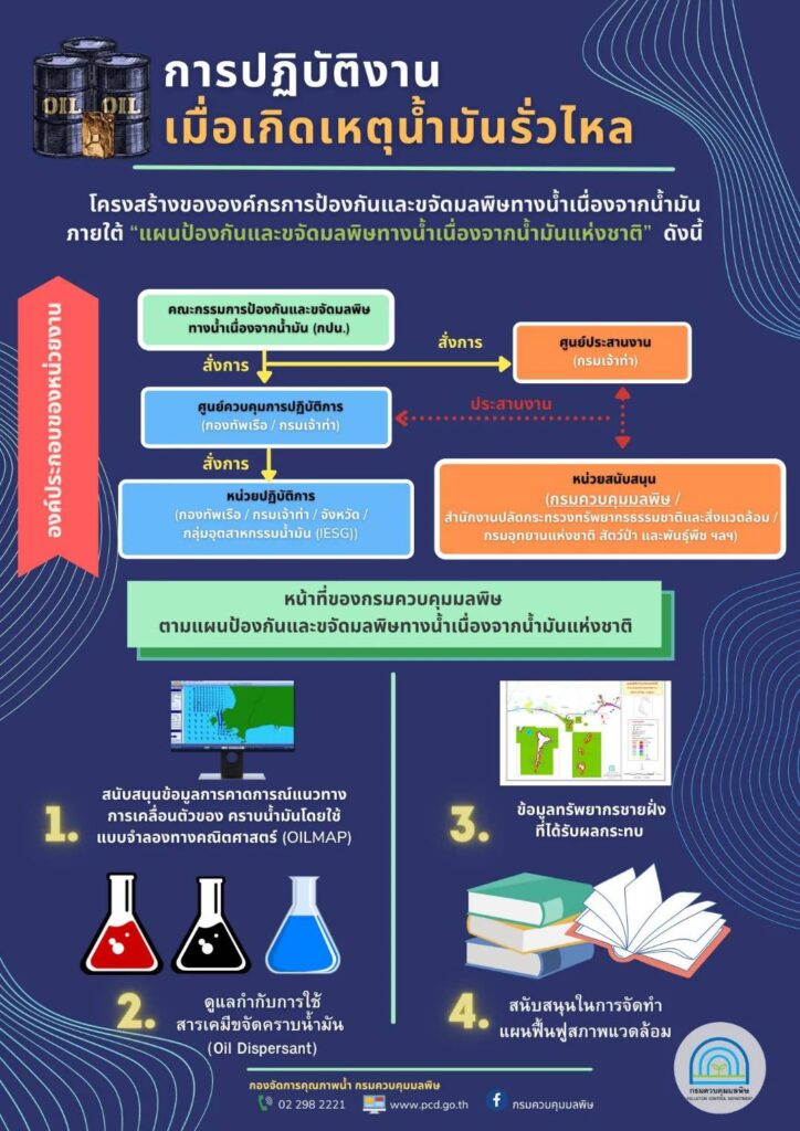 ระยอง 2 ก.พ. – อธิบดีทช. เผยระดมนักวิชาการเดินหน้าแผนปฏิบัติการ “สมุทรศาสตร์และสิ่งแวดล้อมทางทะเล” เร่งตรวจสอบผลกระทบจากเหตุน้ำมันดิบรั่วไหลที่มีต่อทรัพยากรทางทะเลและชายฝั่ง แม้ขณะนี้น้ำทะเลเริ่มใส ตลอดจนศูนย์ควบคุมปฏิบัติการฯ ลดระดับสถานการณ์ฉุกเฉินแล้ว
