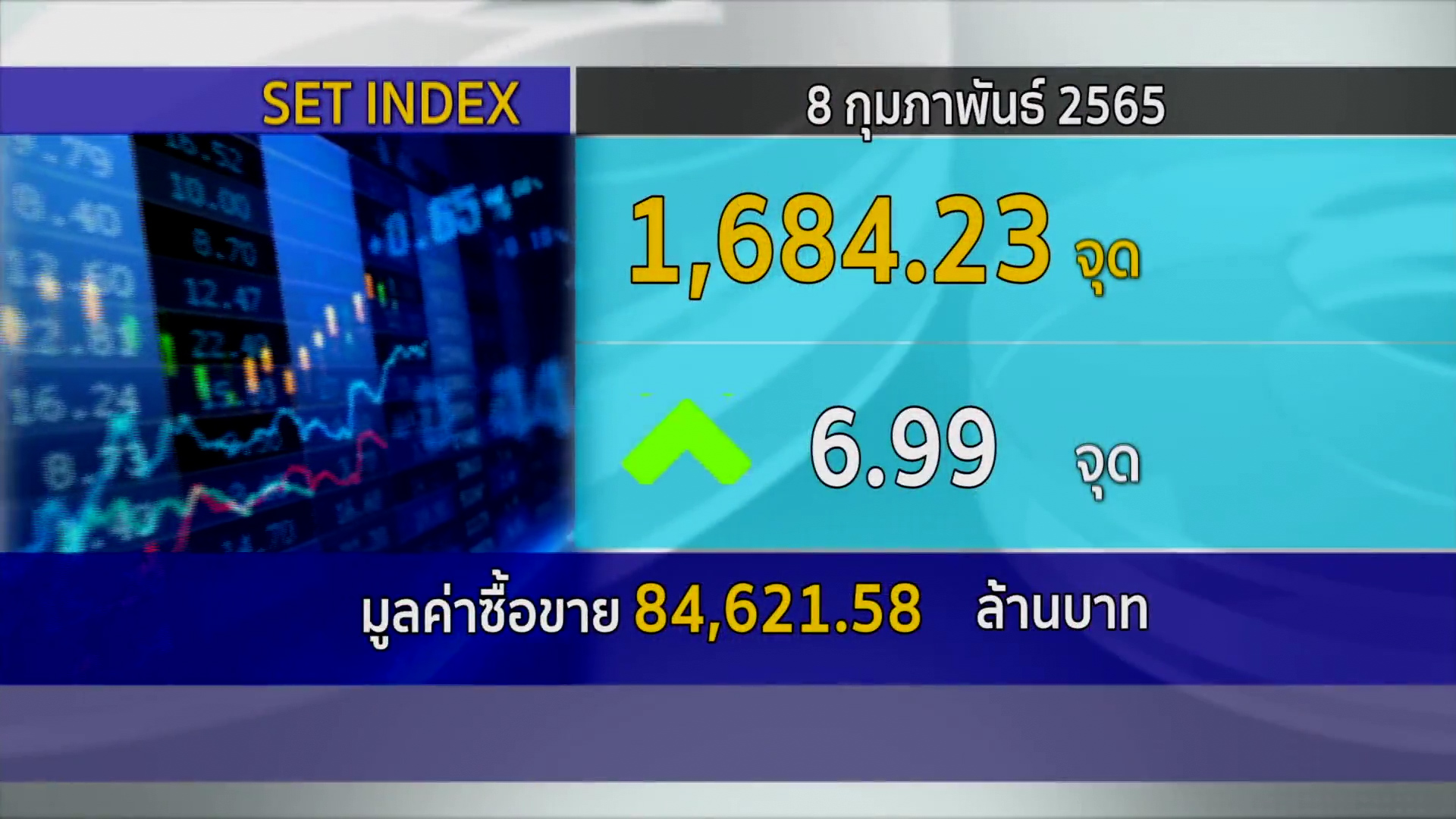 กทม. 8 ก.พ.- ตลาดหลักทรัพย์ ปิดวันนี้ที่ระดับ 1,684.23 จุด เพิ่มขึ้น 6.99 จุด (+0.42%) มูลค่าการซื้อขาย 84,621.58 ล้านบาท ทรงตัวในแดนบวกคล้ายตลาดภูมิภาค รอตัวเลขเงินเฟ้อสหรัฐ