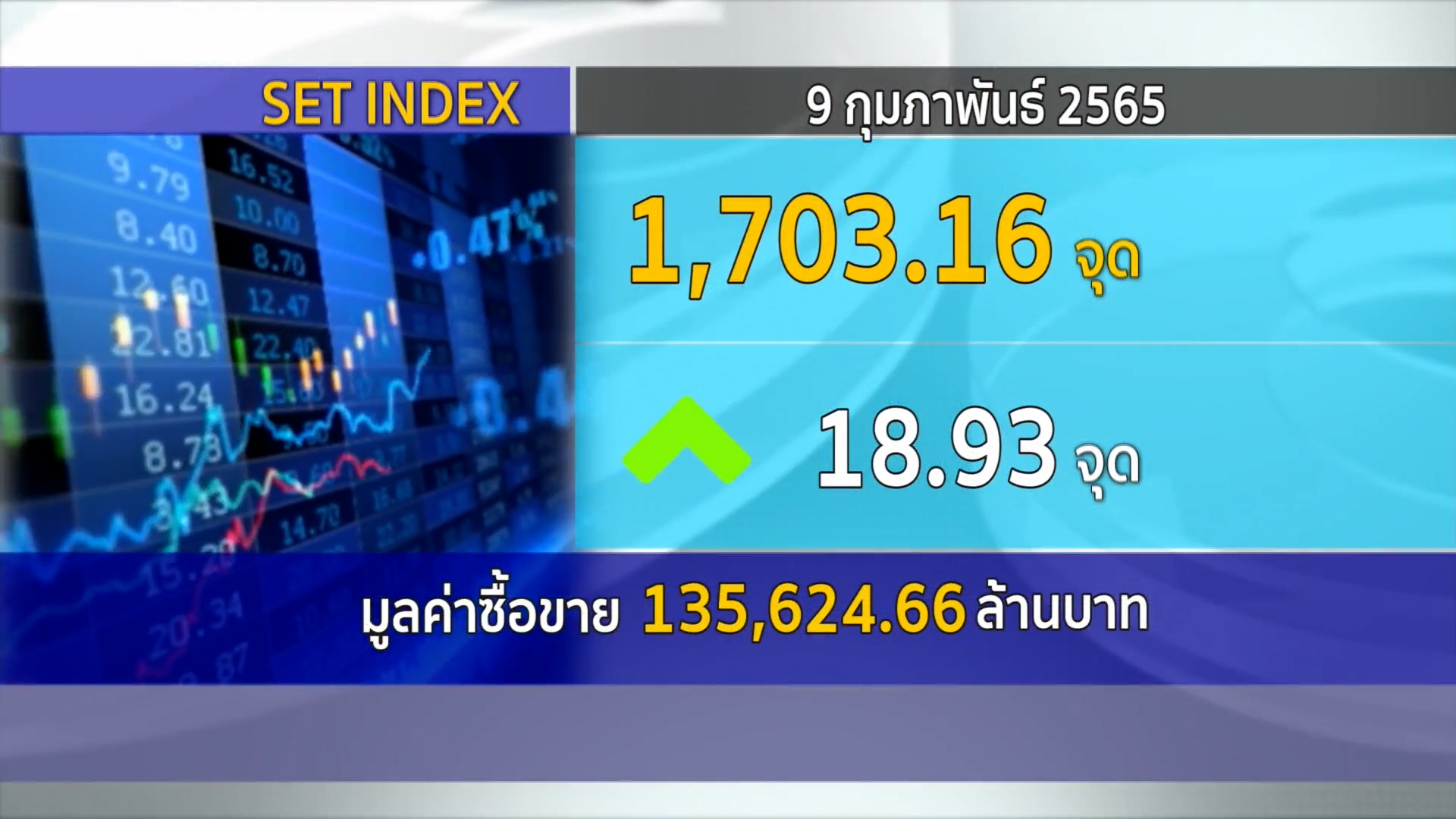 กทม. 9 ก.พ.- ตลาดหลักทรัพย์ ปิดวันนี้ที่ระดับ 1,703.16 จุด เพิ่มขึ้น 18.93 จุด (+1.12%) มูลค่าการซื้อขาย 135,624.66 ล้านบาท