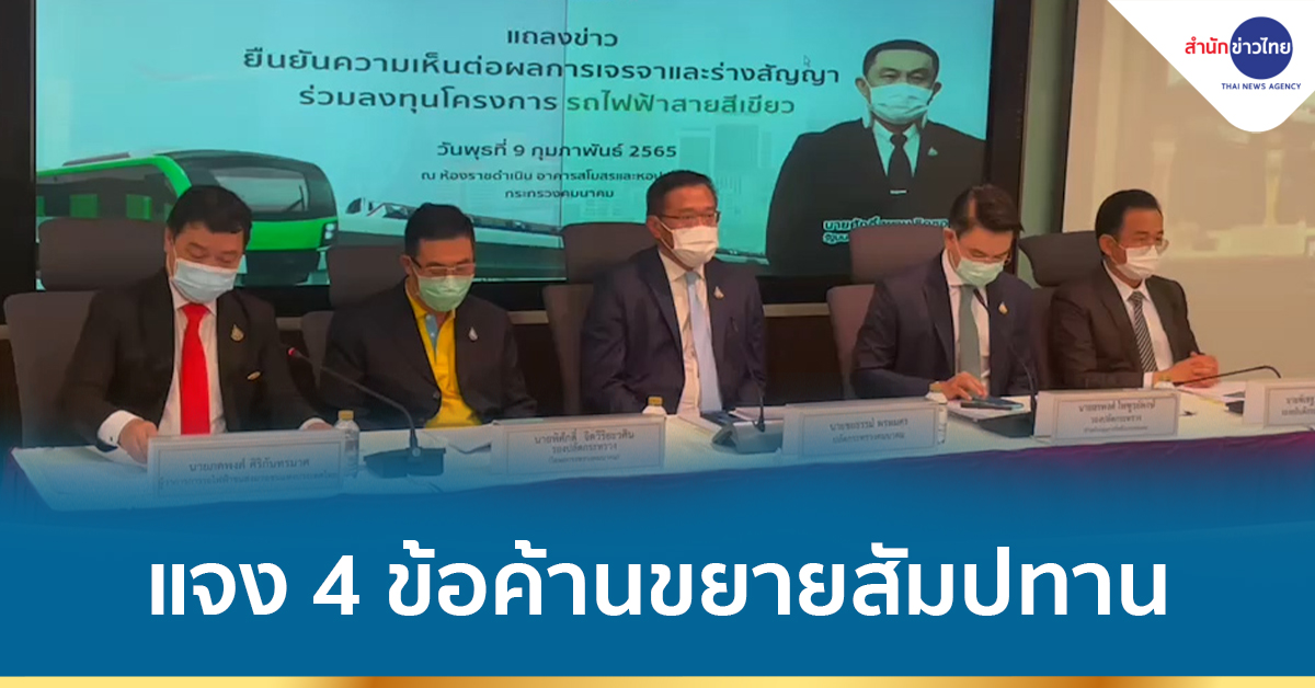 คมนาคม 9 ก.พ.- ก.คมนาคมชี้แจงปัญหาขยายสัมปทานรถไฟฟ้าสายสีเขียว พร้อมโชว์ตัวเลขที่เป็นผลการศึกษาของ กทม. เอง ชี้ชัดว่าหลังหมดสัมปทาน หากภาครัฐเป็นผู้บริหารการเดินรถเอง จะเกิดประโยชน์สูงสุดทั้งเรื่องการมีกระแสเงินสดเหลือที่มากกว่า และการกำหนดราคาค่าโดยสารที่ทำให้ประชาชนเข้าถึงบริการ