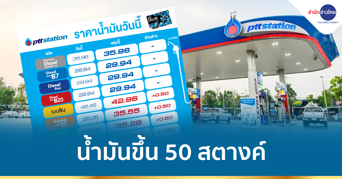 กทม. 11 ก.พ.- ขยับไม่หยุด! ผู้ค้าแจ้งปรับขึ้นราคาน้ำมันทุกชนิด 50 สตางค์ต่อลิตร ส่วนกลุ่มดีเซลคงเดิม มีผลพรุ่งนี้