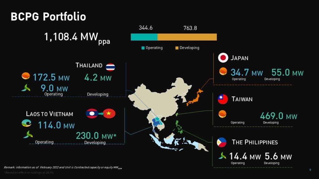 นายนิวัติ อดิเรก ประธานเจ้าหน้าที่บริหารและกรรมการผู้จัดการใหญ่ บมจ. บีซีพีจี เปิดเผยว่า บริษัทวางแผนลงทุนใน5 ปี (65-69 ) ที่ 9.5 หมื่นล้านบาทตั้งเป้าหมายขยายกำลังผลิต เพิ่มเป็น 2 พันเมกะวัตต์จากที่ขณะนี้ มีกำลังผลิตรวม 1.1 พันเมกะวัตต์ และปีนี้คาดมีกำลังผลิตเพิ่มเป็นราว 1.2 เมกะวัตต์ โดยกำลังผลิตใหม่ ส่วนใหญ่มาจากต่างประเทศ ตั้งเป้าทั้ง การลงทุนในพื้นที่ อินโดไชน่า,ฟิลปปินส์ ,ไต้หวัน เป็นต้น โดยไต้หวันได้เข้าลงทุนแล้ว 470 เมกะวัตต์ และตั้งเป้าจะเพิ่มเป็น 1พันเมกะวัตต์ พร้อมทั้งจะแสวงหารายได้ใหม่ ทั้งธุรกิจขายคาร์บอนเครดิต การสร้างรายได้จากธุรกิจแบตเตอรี่โรงไฟฟ้าที่ร่วมทุนกับจีน เป็นต้น