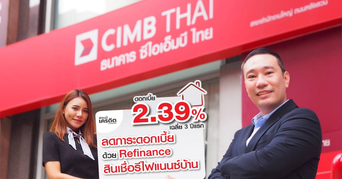 ธนาคารซีไอเอ็มบี ไทย ให้ความสำคัญกับสินเชื่อบ้านมาอย่างต่อเนื่อง ควบคู่ไปกับการเชิญชวนลูกค้าบริหารจัดการหนี้ด้วยการลดภาระดอกเบี้ยบ้านลงด้วยการรีไฟแนนซ์ ทุก 3 ปี จึงออกโปรแกรมสินเชื่อรีไฟแนนซ์ ดอกเบี้ยเฉลี่ย 3 ปีแรก 2.39% ต่อปี เมื่อปีที่แล้ว และลูกค้าให้การตอบรับค่อนข้างดี ส่งผลให้ยอดสินเชื่อที่อยู่อาศัยใหม่ปี 2564 เติบโตกว่า 50% เทียบกับปี 2563 ดังนั้น จึงเดินหน้าทำตลาดต่อในปีนี้ ด้วยอัตราดอกเบี้ยเฉลี่ย 3 ปีแรก 2.39% ฟรีค่าประเมินราคาหลักทรัพย์ ฟรีค่าอากรแสตมป์ และฟรีค่าเบี้ยประกันอัคคีภัย 3 ปีแรก