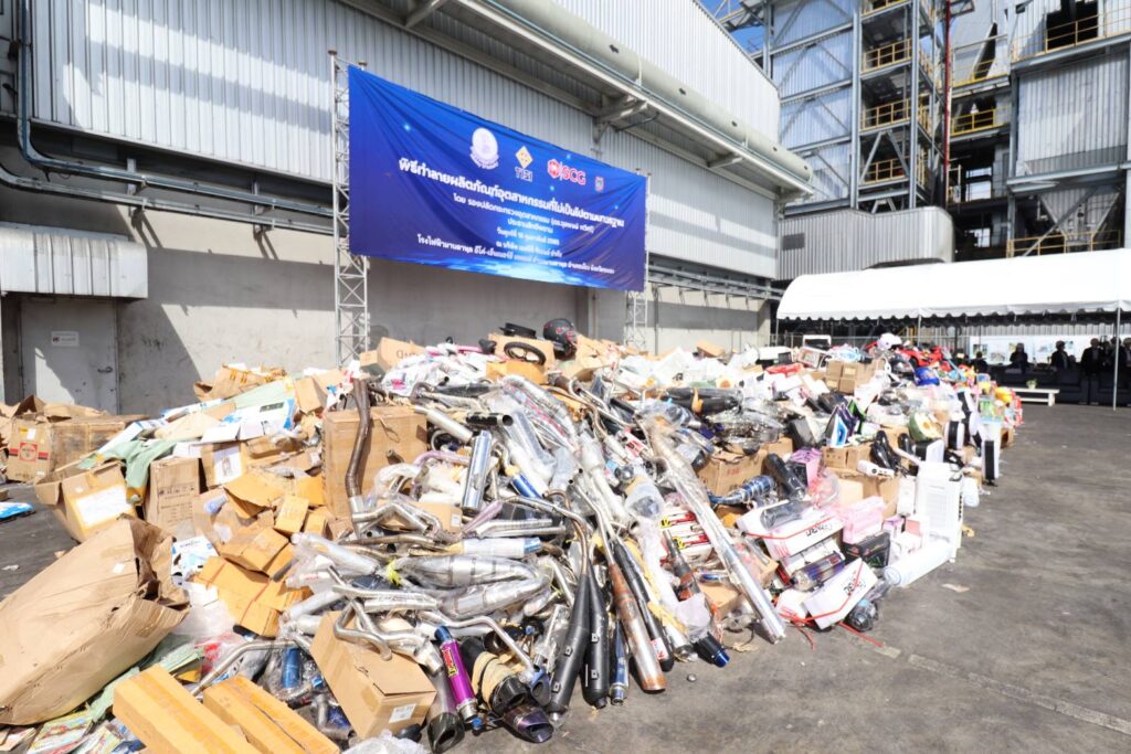 สำหรับกระบวนการทำลาย ได้รับความร่วมมือจากบริษัท เอสซีจี ซิเมนต์ จำกัด โรงไฟฟ้ามาบตาพุด อีโค่-เอ็นเนอร์ยี แพลนท์ ซึ่งเป็นโรงกำจัดกากอุตสาหกรรมและหน่วยผลิตไฟฟ้า โดยการดำเนินงานทุกขั้นตอนเป็นระบบปิด เศษวัสดุที่ได้จากการเผาไหม้ เช่น อะลูมิเนียม เหล็ก เถ้าลอย ยังสามารถนำกลับไปใช้ใหม่ได้ ส่วนวัสดุเผาไหม้ไม่ได้ (Incombustible) สามารถนำไปใช้เป็นวัตถุดิบแทนการก่อสร้างถนนได้ โดยกระบวนการนี้ทำให้ไม่เหลือขยะอุตสาหกรรมที่ต้องกำจัดเพิ่ม