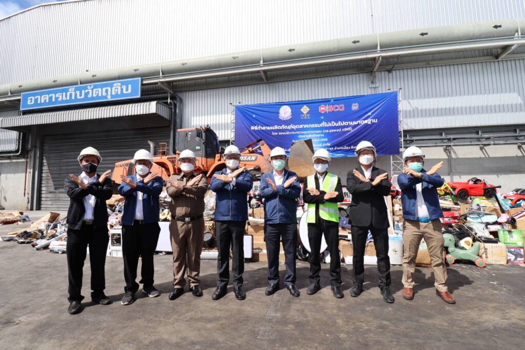 นายบรรจง สุกรีฑา เลขาธิการสำนักงานมาตรฐานผลิตภัณฑ์อุตสาหกรรม (สมอ.) พร้อมด้วย พล.ต.ต.อนันต์ นานาสมบัติ ผบก.ปคบ. พ.ต.อ.วริษฐ์ ปทุมารักษ์ ผกก.3 บก.ปคบ. และผู้บริหาร บริษัท เอสซีจี ซิเมนต์ จำกัด ร่วมกันทำลายสินค้าไม่ได้มาตรฐาน ที่ สมอ. และกองบังคับการปราบปรามการกระทำความผิดเกี่ยวกับการคุ้มครองผู้บริโภค (ปคบ.) ได้บูรณาการร่วมกันในการป้องกันและปราบปรามผู้ทำ ผู้นำเข้า และผู้จำหน่ายผลิตภัณฑ์อุตสาหกรรมที่ไม่ได้มาตรฐาน ทั้งที่จำหน่ายในท้องตลาด และทางออนไลน์ ที่ตรวจจับและยึดอายัดไว้ ตั้งแต่เดือนกันยายน 2563 – มกราคม 2565 จำนวนกว่า 1 ล้านชิ้น มูลค่ากว่า 40 ล้านบาท ประกอบด้วย ของเล่น ไฟแช็กก๊าซ เครื่องใช้ไฟฟ้าสำหรับดูแลผิวและผม เตารีด ลำโพงพร้อมเครื่องขยาย เตาย่าง เตาปิ้ง เตาไมโครเวฟ พัดลมไฟฟ้า หม้อหุงข้าวไฟฟ้า เต้าเสียบเต้ารับ ปลั๊กพ่วง กระทะไฟฟ้า ฝักบัวอาบน้ำ ก๊อกน้ำ หมวกกันน็อก ท่อไอเสียรถจักรยานยนต์ หัวนมยาง ของเล่น ฟิล์มยืดหุ้มห่ออาหาร เซลล์และแบตเตอรี่ เป็นต้น เพื่อป้องกันไม่ให้สินค้าเหล่านี้กลับไปหมุนเวียนในท้องตลาด หรือนำกลับมาใช้ได้อีก เพราะเป็นสินค้าที่ไม่ได้มาตรฐาน ก่อให้เกิดอันตรายต่อผู้บริโภค