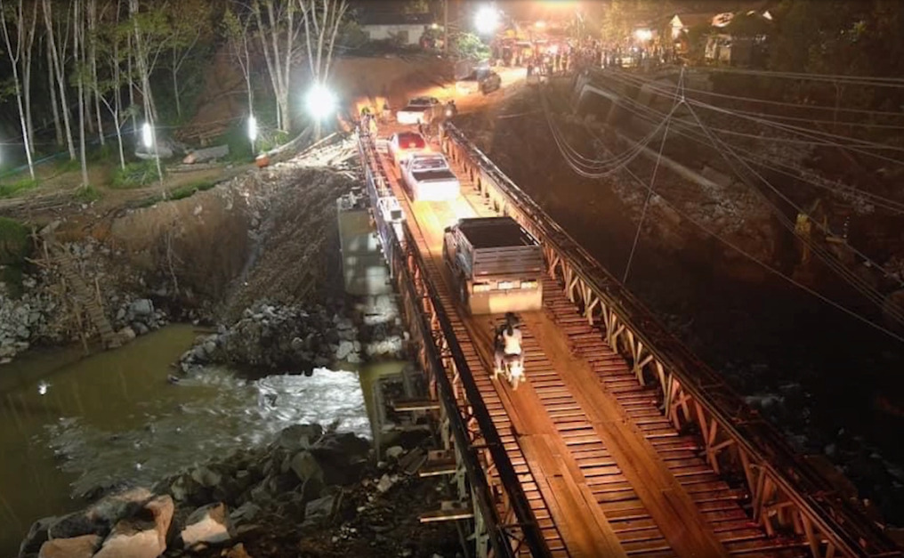นายสราวุธ ทรงศิวิไล อธิบดีกรมทางหลวง เผยว่าหลังเกิดสถานการณ์ฝนตกหนักทางภาคใต้ จนทำให้เส้นทางขาดบนทางหลวงหมายเลข 4186 โรงเหล็ก–ห้วยพาน อำเภอนบพิตำ จังหวัดนครศรีธรรมราช และประชาชนไม่สามารถสัญจรผ่านได้ ล่าสุดกรมทางหลวง สำนักงานทางหลวงที่ 16 นำเจ้าหน้าที่ ยานพาหนะ เครื่องจักร และเครื่องมือทำการทอดสะพานเบลีย์ หรือ สะพานเหล็กชั่วคราวแล้วเสร็จ สามารถเปิดการจราจรได้แล้วตามปกติเมื่อวันที่ 19 ก.พ. 65 เวลา 21.00 น. เพื่อบรรเทาความเดือดร้อนของประชาชนให้สามารถสัญจรไปมาได้ ซึ่งกรมทางหลวงจะทำการสำรวจความเสียหายและบูรณะซ่อมแซมเส้นทางถาวรต่อไป.-สำนักข่าวไทย