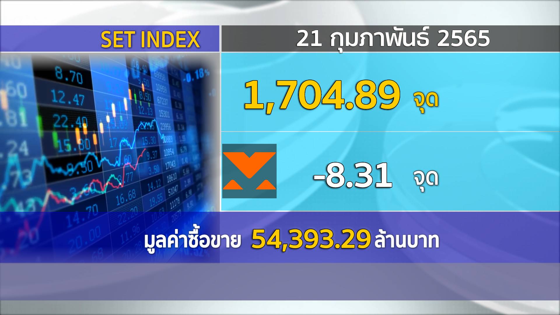 กทม. 21 ก.พ.-ตลาดหลักทรัพย์ฯ ปิดช่วงเช้าวันนี้ที่ระดับ 1,704.89 จุด ลดลง 8.31 จุด (-0.48%) มูลค่าการซื้อขายราว 54,393.29 ล้านบาท