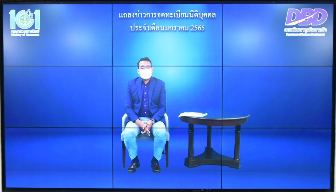 นายทศพล ทังสุบุตร อธิบดีกรมพัฒนาธุรกิจการค้ากล่าวว่ายอดจดทะเบียนนิติบุคคลทั่วประเทศตั้งใหม่เดือนมกราคม 2565 ซึ่งมีผู้ประกอบธุรกิจยื่นขอจดทะเบียนจัดตั้งห้างหุ้นส่วนบริษัทใหม่ทั่วประเทศ ทั้งสิ้น 7,972 ราย มีมูลค่าทุนจดทะเบียนจำนวน 29,081.96 ล้านบาท โดยสูงสุด 3 อันดับแรก ได้แก่ ธุรกิจก่อสร้างอาคารทั่วไป จำนวน 914 ราย คิดเป็น 11% รองลงมา คือ ธุรกิจอสังหาริมทรัพย์ จำนวน 318 ราย คิดเป็น 4% และอันดับ 3 คือ ธุรกิจขนส่งและขนถ่ายสินค้า จำนวน 244 ราย คิดเป็น 3% ตามลำดับ