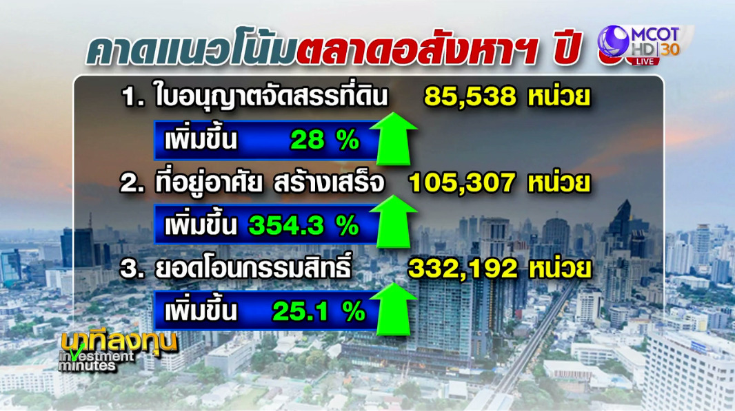 25 ก.พ. – ธุรกิจอสังหาฯ ปีนี้ หลายฝ่ายคาดการณ์ตรงกันว่าจะเริ่มฟื้นตัวพ้นจุดต่ำสุด ขณะที่ภาคเอกชนต้องปรับตัวหาโมเดลธุรกิจแบบใหม่ๆ เพื่อทางรอด. – สำนักข่าวไทย