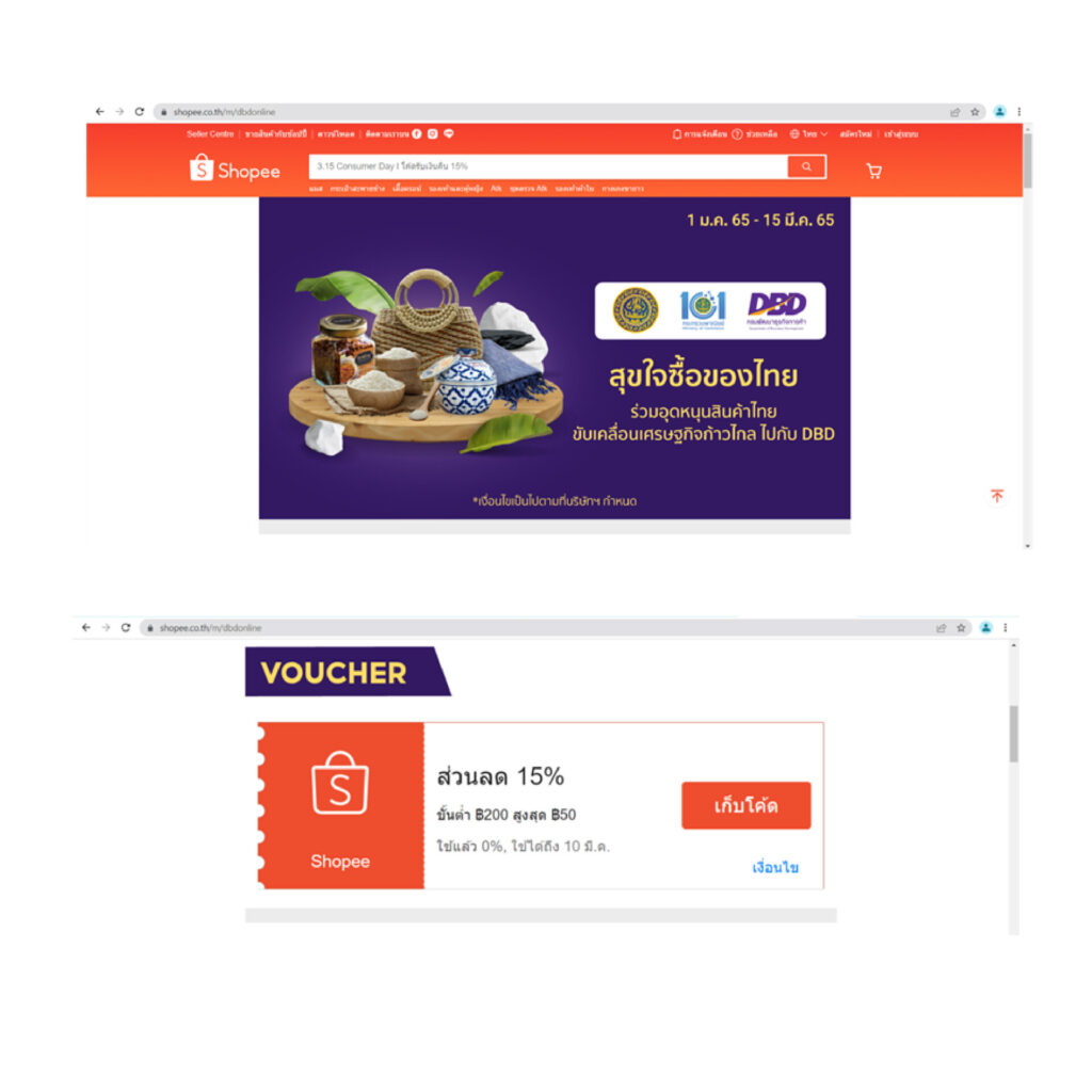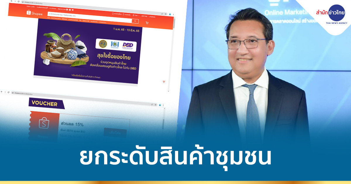 กรมพัฒนาธุรกิจการค้า จับมือ Shopee ผู้นำแพลตฟอร์มอีคอมเมิร์ชในภูมิภาคเอเชียตะวันออกเฉียงใต้และไต้หวัน จัดกิจกรรมส่งเสริมการตลาดผลิตภัณฑ์ชุมชน ผ่านแคมเปญ ‘ช้อปฟิน ของเด่นพื้นที่ ของดีพื้นถิ่น’ ยกระดับสินค้าชุมชน กระตุ้นยอดขายผ่านช่องทางออนไลน์ ผ่านแอปพลิเคชัน Shopee พร้อมร่วมฉลองกับแคมเปญใหญ่แรกของปีจากช้อปปี้ Shopee 3.15 Consumer Day คืนกำไรนักช้อป มอบความคุ้มค่าให้นักช้อปทุกคน รับทันทีโค้ดส่วนลดพิเศษ 15% ระหว่างวันที่ 4 – 10 มีนาคม 2565