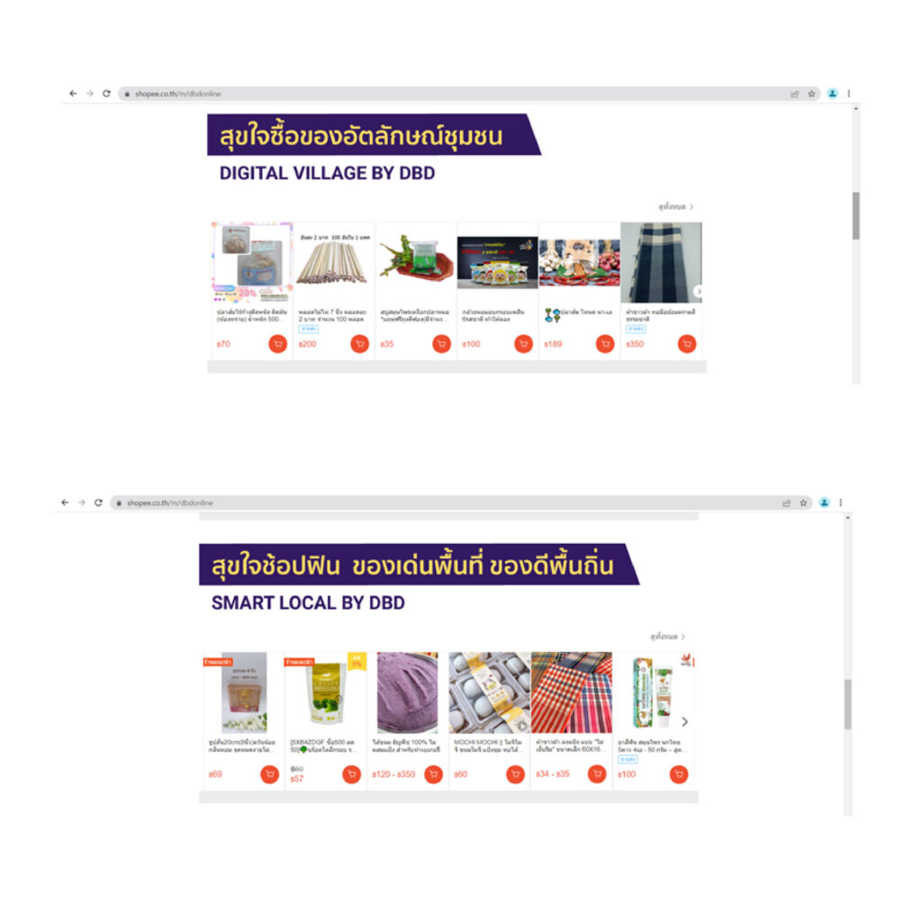 ทั้งนี้ เพื่อให้สอดคล้องกับพฤติกรรมผู้บริโภคตามการดำเนินชีวิตวิถีใหม่ (New Normal) ที่นิยมซื้อสินค้าและบริการ ผ่านช่องทางออนไลน์เพิ่มมากขึ้น กรมฯ จึงได้จัดกิจกรรมส่งเสริมการขายสินค้าชุมชนผ่านออนไลน์ โดยประสานความร่วมมือกับแพลตฟอร์มออนไลน์ชื่อดังอย่าง Shopee จัดแคมเปญ ‘ช้อปฟิน ของเด่นพื้นที่ ของดีพื้นถิ่น’ ระหว่างวันที่ 4 – 10 มีนาคม 2565 พร้อมมอบโค้ดส่วนลดพิเศษ 15% กรมฯ ได้คัดสรรร้านค้าชุมชนกว่า 100 ร้านค้า สินค้ารวมกว่า 3,000 รายการ ครอบคลุม 4 กลุ่มสินค้า ได้แก่ กินดี (อาหารและเครื่องดื่ม) อยู่ดี (ของใช้ ของตกแต่ง ของที่ระลึก) ดูดี (ผ้าและเครื่องแต่งกาย) สวยดี (สมุนไพรที่ไม่ใช่อาหาร) ขึ้นจำหน่ายบนแพลตฟอร์ม Shopee โดยสามารถรับส่วนลดง่ายๆ เพียงกรอก Code “LOCAL15” ผ่านช่องทาง https://shopee.co.th/dbdonline หรือแอปพลิเคชัน Shopee