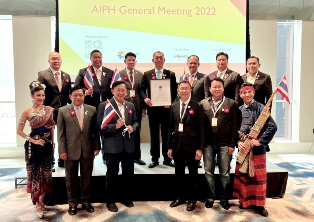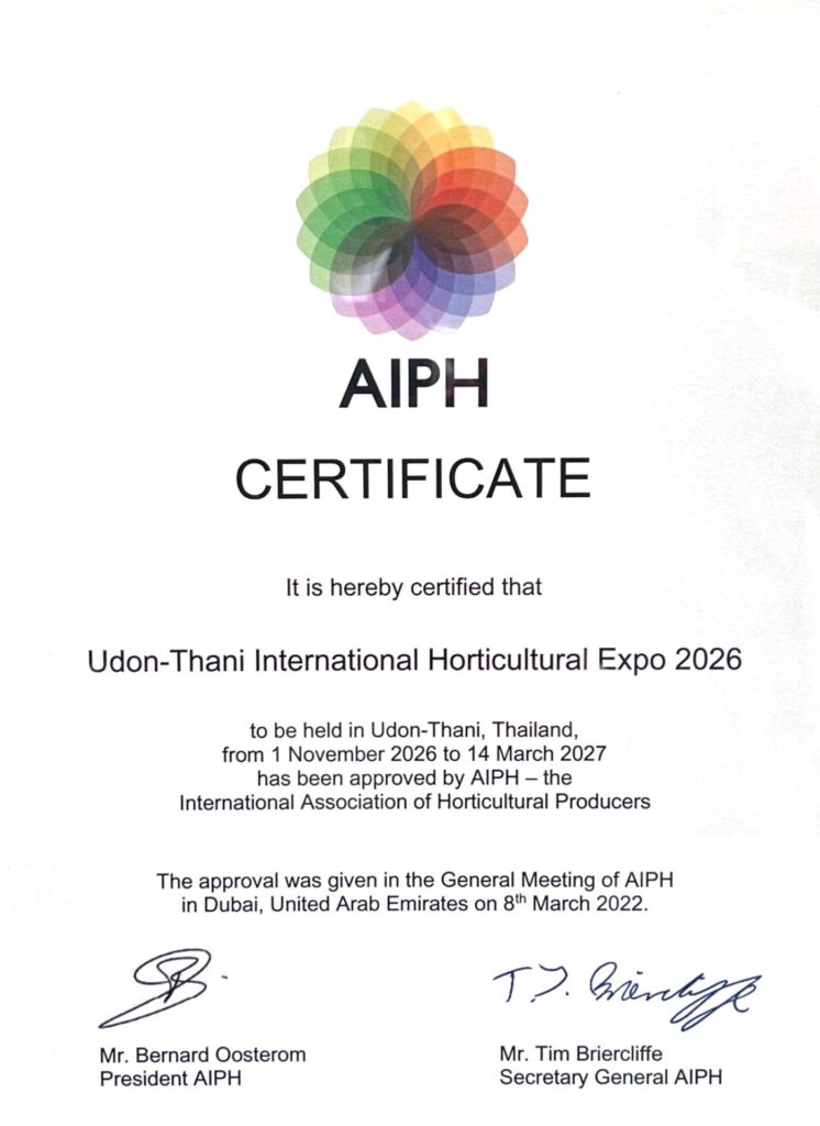 นายเฉลิมชัย ศรีอ่อน รัฐมนตรีว่าการกระทรวงเกษตรและสหกรณ์ พร้อมด้วยนายทองเปลว กองจันทร์ ปลัดกระทรวงเกษตรและสหกรณ์ นายระพีภัทร์ จันทรศรีวงศ์ อธิบดีกรมวิชาการเกษตร นายสยามศิริมงคล ผู้ว่าราชการจังหวัดอุดรธานี และนายจิรุตถ์ อิศรางกูร ณ อยุธยา ผู้อำนวยการสำนักงานส่งเสริมการจัดการประชุมและนิทรรศการ (องค์การมหาชน) (TCEB หรือ สสปน.) เข้าร่วมการประชุมสมาคมพืชสวนโลก (International Association of Horticultural Producers : AIPH) ณ Crowne Plaza Dubai Marina เมืองดูไบ สหรัฐอาหรับเอมิเรตส์ โดยในวันนี้ AIPH ได้ประกาศการคัดเลือกอย่างเป็นทางการให้ประเทศไทยเป็นเจ้าภาพการจัดงานมหกรรมพืชสวนโลกจังหวัดอุดรธานี พ.ศ. 2569 (ระดับB) ภายใต้แนวคิด Diversity of Life: Connecting people, water and plants for sustainable living (วิถีชีวิตสายน้ำและพืชพรรณ) ระยะเวลาจัดงานระหว่างวันที่ 1 พฤศจิกายน 2569 – 14 มีนาคม2570 (134 วัน) บริเวณพื้นที่ชุ่มน้ำหนองแด ตำบลกุดสระ อำเภอเมือง จังหวัดอุดรธานี บนเนื้อที่ 1,030 ไร่ แบ่งเป็น พื้นน้ำ 400 ไร่ และพื้นดิน 630 ไร่ คาดว่าจะทำให้มีจำนวนผู้เข้าชมงานถึง 3.6 ล้านคน โดยคาดว่าจะสามารถเพิ่มเงินสะพัดระหว่างการจัดงานประมาณ 3 หมื่นล้านบาท สามารถเพิ่มมูลค่าการสร้างผลิตภัณฑ์มวลรวม (GDP) ประมาณ 20,000 ล้านบาท และสร้างการจ้างงานประมาณ 81,000 อัตรา