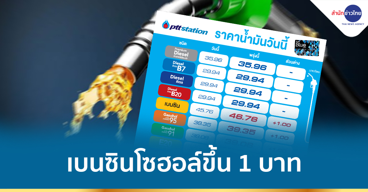 PTT Station ปรับราคาขายปลีกน้ำมันกลุ่มเบนซินและแก๊สโซฮอล์ทุกชนิดขึ้น 1.00 บาทต่อลิตร ส่วนกลุ่มดีเซลทุกชนิด คงเดิม มีผล 9 มี.ค.65 เวลา 05.00 น. เป็นต้นไป โดยราคาขายปลีกจะเป็นดังนี้