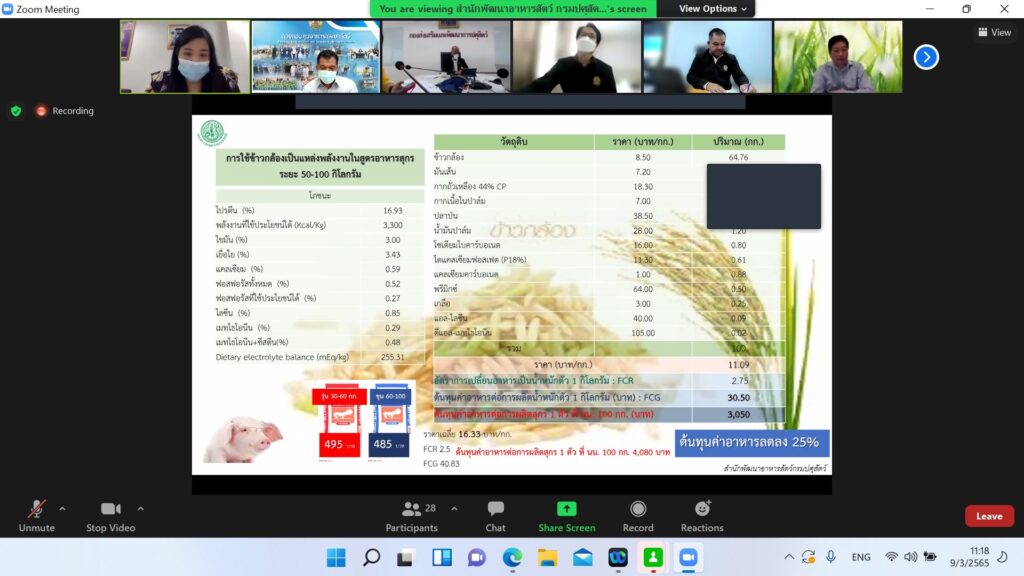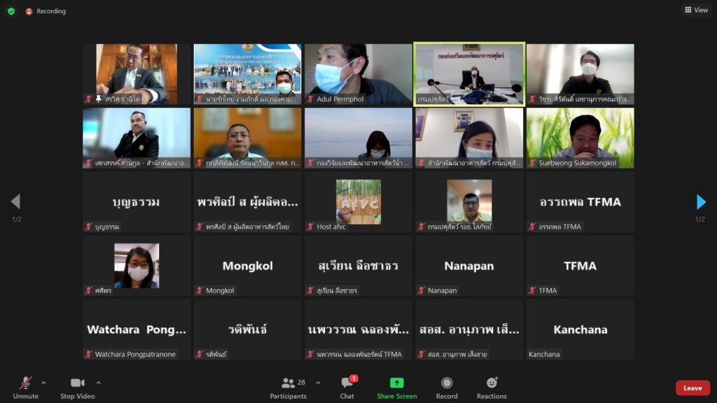 นายสรวิศ ธานีโต อธิบดีกรมปศุสัตว์ พร้อมด้วยนายโสภัชย์ ชวาลกุล รองอธิบดีกรมปศุสัตว์ ผู้แทนกรมประมง ร่วมกับสมาคมผู้ผลิตอาหารสัตว์ไทยและสมาคมส่งเสริมผู้ใช้วัตถุดิบอาหารสัตว์ ได้ประชุมผ่านระบบออนไลน์ เพื่อหารือถึงผลกระทบและแนวทางแก้ไขเพื่อบริหารจัดการวัตถุดิบอาหารสัตว์ในสถานการณ์ปัจจุบันที่ขาดแคลนและมีราคาสูงขึ้น
