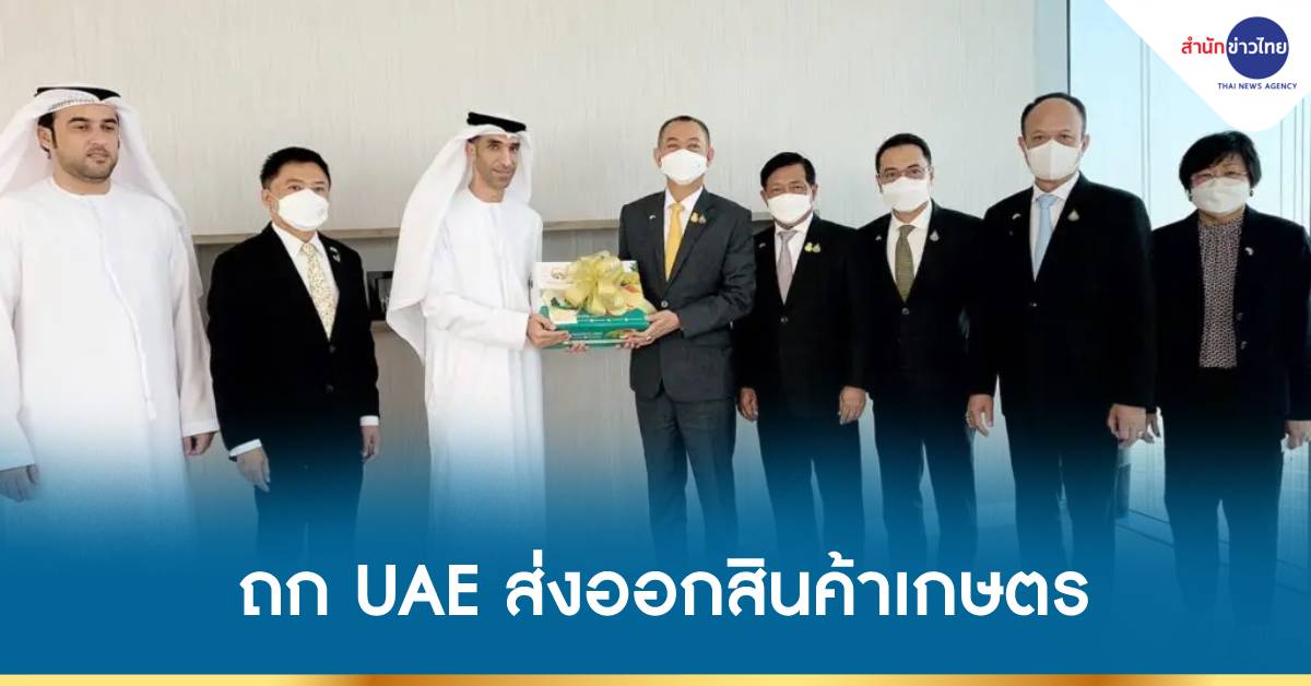 ด้านการส่งออกสินค้าเกษตร สหรัฐอาหรับเอมิเรตส์เป็นตลาดส่งออกสินค้าเกษตรอันดับที่ 24 ของไทย ในระหว่างปี 2562 – 2564 ไทยมีสัดส่วนการส่งออกไปสหรัฐอาหรับเอมิเรตส์ร้อยละ 0.60 ของมูลค่าการส่งออกสินค้าเกษตรไปโลก โดยในปี 2562 ไทยส่งออกไปสหรัฐอาหรับเอมิเรตส์เป็นมูลค่า 7,468 ล้านบาท และในปี 2563 มีมูลค่าลดลงเหลือ 6,939 ล้านบาท
