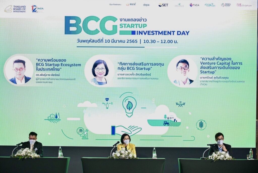 นางสาวดวงใจ อัศวจินตจิตร์ เลขาธิการคณะกรรมการส่งเสริมการลงทุน หรือ บีโอไอ เปิดเผยว่า บีโอไอร่วมกับสำนักงานนวัตกรรมแห่งชาติ (องค์การมหาชน) หรือ NIA จัดงานมหกรรม “BCG Startup Investment Day” ภายใต้แนวคิดเศรษฐกิจ Bio-Circular-Green Economy (BCG Economy) ขึ้นเป็นครั้งแรก เพื่อส่งเสริมและสนับสนุนให้กลุ่มวิสาหกิจเริ่มต้น หรือ Startup ที่มีศักยภาพเข้าถึงแหล่งเงินทุนและมาตรการสนับสนุนต่าง ๆ พร้อมทั้งเปิดให้มีการสร้างเครือข่ายพันธมิตรเพื่อต่อยอดโอกาสทางธุรกิจในอนาคต