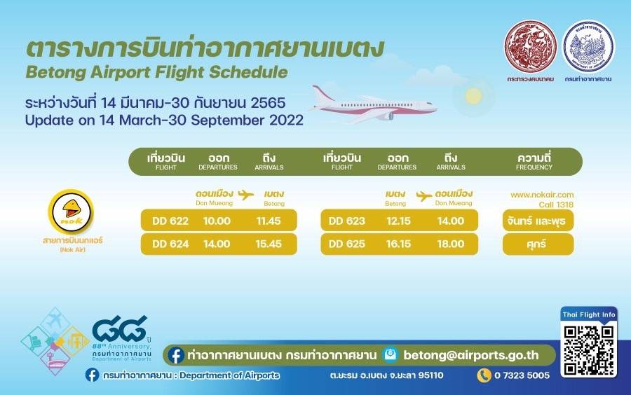 ทั้งนี้ที่ผ่านมาทางกระทรวงคมนาคมได้ส่งเสริมการคมนาคมขนส่งและโลจิสติกส์ โดยเฉพาะการพัฒนาระบบสาธารณูปโภคขั้นพื้นฐานด้านคมนาคมให้ครอบคลุมทุกพื้นที่ทั่วประเทศและรองรับการเดินทางได้หลายรูปแบบ ด้วยการดำเนินโครงการก่อสร้างท่าอากาศยานเบตง จังหวัดยะลา เพื่อแก้ไขปัญหาการเดินทางสู่อำเภอเบตงที่มีสภาพภูมิประเทศเป็นภูเขาสูงชัน ไม่สะดวกต่อการเดินทางให้สามารถสัญจรไปมาได้อย่างสะดวกและปลอดภัยมากยิ่งขึ้น รวมทั้งเป็นการกระตุ้นการท่องเที่ยวในพื้นที่ โดยท่าอากาศยานเบตงได้รับใบรับรองการดำเนินงานสนามบินสาธารณะจากสำนักงานการบินพลเรือนแห่งประเทศไทย(กพท.) เมื่อ 28 ม.ค.65 ซึ่งมีความพร้อมให้บริการตามมาตรฐาน