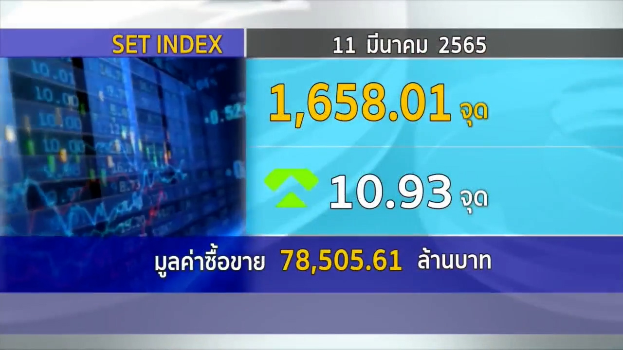 SET ปิดวันนี้ที่ระดับ 1,658.01 จุด เพิ่มขึ้น 10.93 จุด (+0.66%) มูลค่าการซื้อขาย 78,505.61 ล้านบาท นักวิเคราะห์ฯเผยดัชนีตลาดหุ้นไทยวันนี้รีบาวด์หลังช่วงเช้ารับแรงกดดันจากการเจรจารัสเซียและยูเครนล้มเหลว แต่ช่วงบ่ายเห็นสัญญาณเชิงบวกมากขึ้นเมื่อผู้นำรัสเซียไม่ได้ปฎิเสธพบปะผู้นำยูเครน แนวโน้มสัปดาห์หน้าคาดตลาดยังขึ้นไปได้ต่อ ให้แนวรับ 1,650 จุด แนวต้านที่ 1,670 จุด.-สำนักข่าวไทย