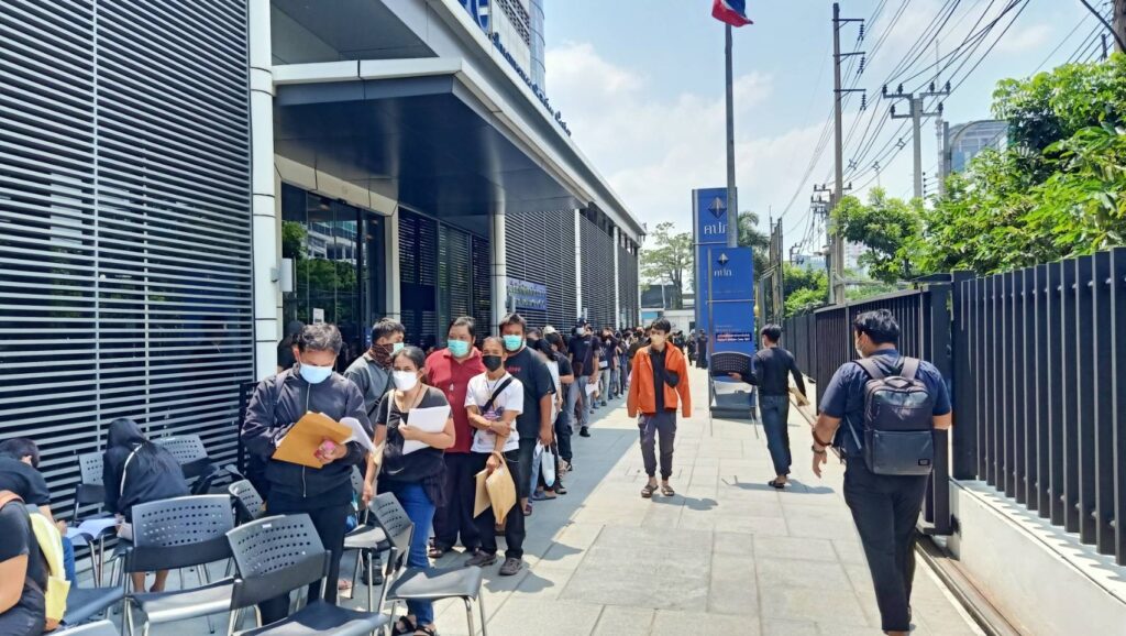 น.ส.อรอนงค์ หลวงวิเศษ 1 ในผู้เดือดร้อน เดินทางมาจาก จ.เชียงใหม่ บอกว่า ติดโควิดทั้งครอบครัว เป็นเพียงมนุษย์เงินเดือน ไม่มีใครอยากติดเชื้อ แล้วต้องเสียเงินค่าตรวจ RTPCR กว่า 3,000 บาท หวังจะได้เงินค่าสินไหม สุดท้ายยื่นเรื่องกว่า 30 วันแล้วยังไม่ได้รับเงิน