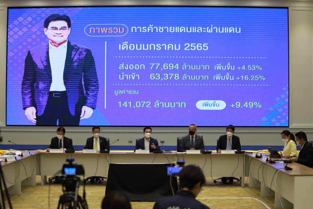 สำหรับ ค้าชายแดนและการค้าผ่านแดนเดือนม.ค.65 ยังอยู่ในเกณฑ์ดี ตัวเลขการค้ารวม มีมูลค่า 141,072 ล้านบาท เพิ่ม 9.49% แยกเป็นการส่งออก มูลค่า 77,694 ล้านบาท เพิ่มขึ้น 4.53% และนำเข้า มูลค่า 63,378 ล้านบาท เพิ่มขึ้น 16.25% และเมื่อพิจารณาเป็นรายประเทศ พบว่า การค้ารวมทั้งส่งออกและนำเข้าชายแดนไปยังมาเลเซีย มีมูลค่า 30,549 ล้านบาท เพิ่ม 14.26% กัมพูชา มูลค่า 17,765 ล้านบาท เพิ่ม 17.94% สปป.ลาว มูลค่า 23,456 ล้านบาท เพิ่ม 39.86% เมียนมา มูลค่า 18,607 ล้านบาท เพิ่ม 36.26% และผ่านแดนไปยังสิงคโปร์ มูลค่า 10,270 ล้านบาท เพิ่ม 15.47% เวียดนาม มูลค่า 8,066 ล้านบาท เพิ่ม 36.19% และมีประเทศเดียวที่ลดลง คือ จีน มูลค่า 16,988 ล้านบาท ลด 24.34%