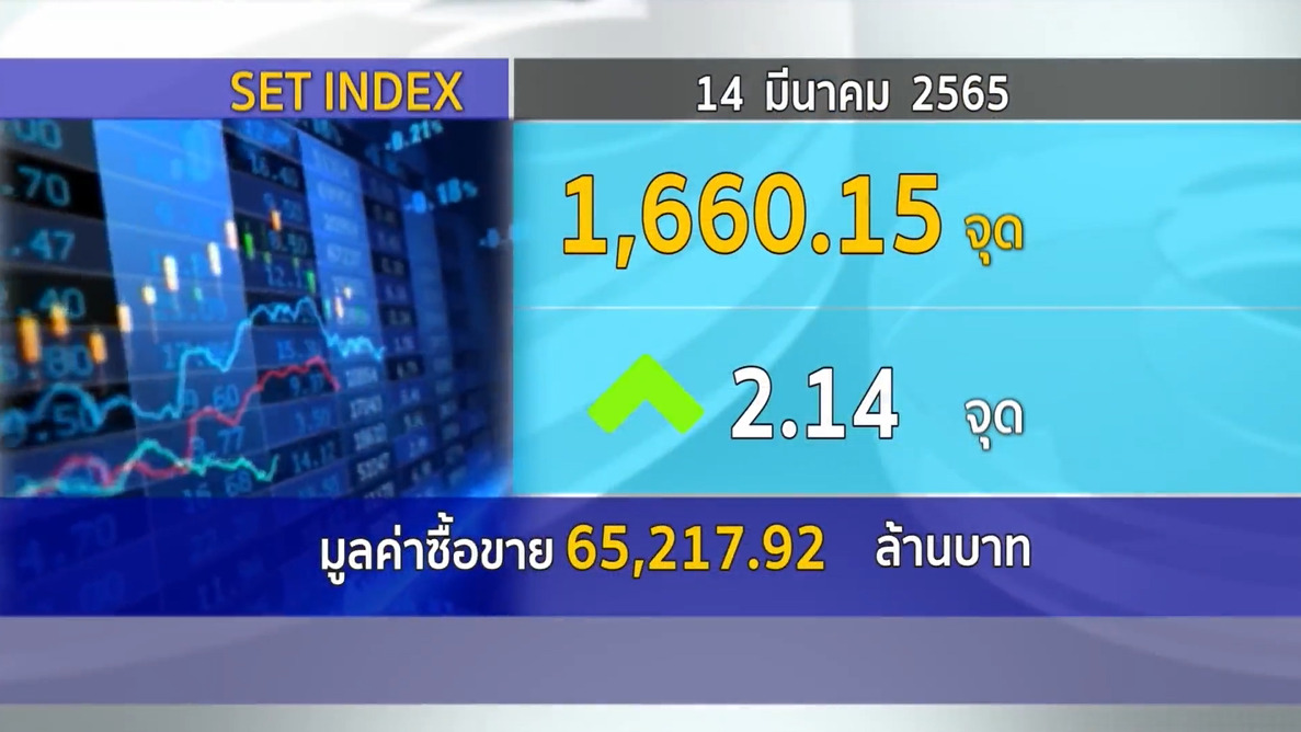 กทม. 14 มี.ค.-ตลาดหลักทรัพย์ ปิดวันนี้ที่ระดับ 1,660.15 จุด เพิ่มขึ้น 2.14 จุด (+0.13%) มูลค่าการซื้อขาย 65,217.92 ล้านบาท ตลาดหุ้นวันนี้แกว่งไซด์เวย์ไร้ปัจจัยใหม่ นักลงทุนรอติดตามผลการหารือระหว่างรัสเซียและยูเครน และการประชุมเฟด