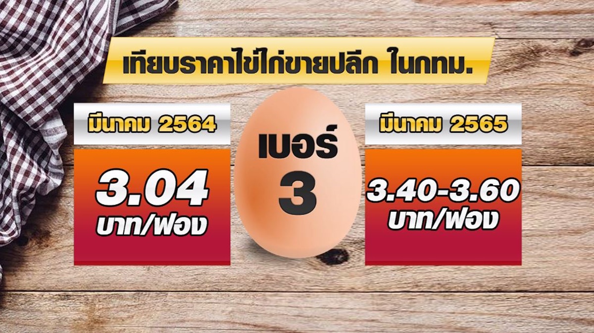 กรุงเทพฯ 15 มี.ค. – ขึ้นอีกแล้ว! ไข่ไก่ปีนี้ปรับขึ้นราคาเป็นครั้งที่ 3 โดยล่าสุดขึ้นอีกฟองละ 10 สตางค์ ซึ่งจะทำให้ราคาไข่ไก่สูงขึ้นแผงละ 3 บาท มีผลพรุ่งนี้ (17 มี.ค.) ผู้เลี้ยงไก่ไข่แจงต้นทุนสูงขึ้นมาก ขณะที่ผู้ค้าปลีกโอดไข่ไก่ขึ้นราคา ทำให้เบอร์ใหญ่ขายยาก ส่วนเบอร์เล็กอย่างเบอร์ 4 เบอร์ 5 เริ่มขาดตลาด. – สำนักข่าวไทย