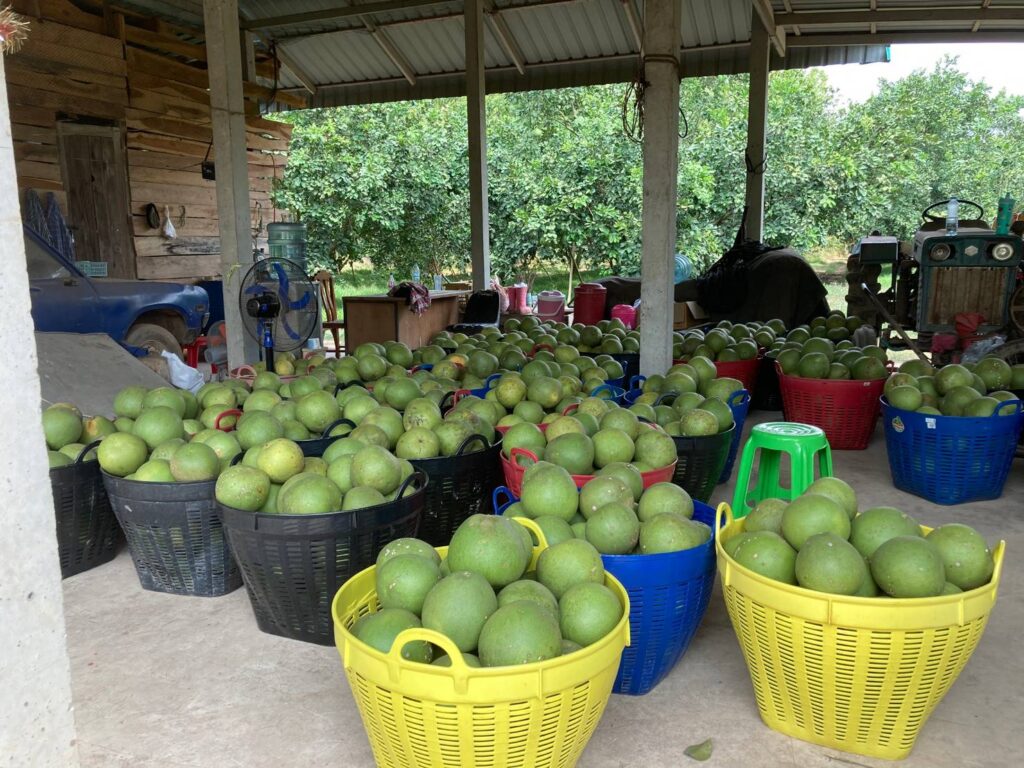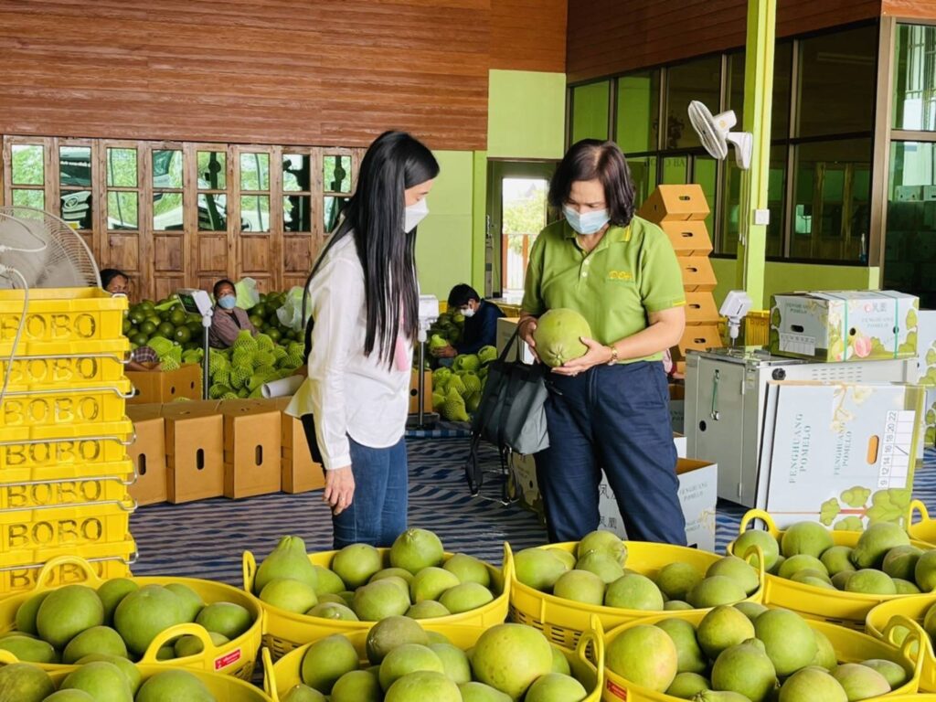 นอกจากนี้ยังตรวจสอบพบว่า ตามฐานข้อมูลทะเบียนเกษตรกรที่ขึ้นทะเบียนไว้กับกรมส่งเสริมการเกษตร มีพื้นที่ปลูกส้มโอที่ให้ผลผลิตแล้ว 14,705 ไร่และมีผลผลิตทั้งหมด 18,510 ตัน และจากฐานข้อมูลการรับรองแหล่งผลิต GAP พืช ของกรมวิชาการเกษตร มีพื้นที่ที่ผ่านการรับรองแหล่งผลิต GAP ส้มโอ 484 ราย 713 แปลง 6,359 ไร่ และคาดการณ์ปริมาณผลผลิต 2,986 ตัน มีโรงคัดบรรจุส้มโอที่ขึ้นทะเบียนโรงงานผลิตสินค้าพืชกับกรมวิชาการเกษตรทั้งหมด 11 โรง มีปริมาณผลผลิตที่ได้ตรวจสอบข้อมูลเลขทะเบียนสวน GAP เพื่อการส่งออก ตั้งแต่เดือนตุลาคม 2564 ถึงปัจจุบั 3,649 ตัน ซึ่งปริมาณการส่งออกสูงที่สุดในช่วงเดือนมกราคม – มีนาคม 2565 รวม 2,655 ตัน
