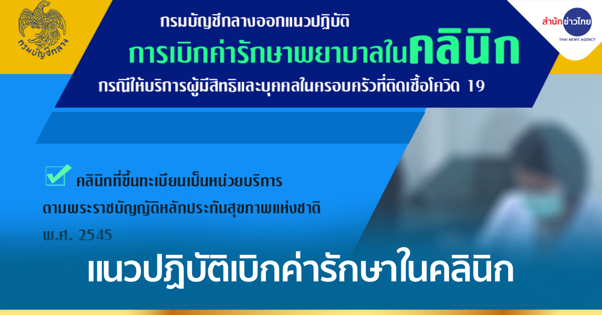 นางสาวกุลยา ตันติเตมิท อธิบดีกรมบัญชีกลาง เปิดเผยว่า ตามที่กรมบัญชีกลางได้ออกหลักเกณฑ์และอัตราค่ารักษาพยาบาลประเภทผู้ป่วยนอกและผู้ป่วยในสถานพยาบาลของทางราชการ กรณีผู้มีสิทธิหรือบุคคลในครอบครัวเสี่ยงหรือติดเชื้อไวรัสโคโรนา 2019 หรือโรคโควิด-19 ให้สถานพยาบาลของทางราชการถือปฏิบัติ แต่เนื่องจากปัจจุบันในพื้นที่เขตเมือง โดยเฉพาะกรุงเทพมหานครและปริมณฑล มีปริมาณผู้ติดเชื้อโควิด-19 เป็นจำนวนมาก และส่วนใหญ่เป็นผู้ป่วยอาการเล็กน้อย (สีเขียว) ซึ่งการให้บริการทางการแพทย์ประเภท Home Isolation, Community Isolation และ Self Isolation รวมถึงสถานพยาบาลประเภทที่ไม่รับผู้ป่วยไว้ค้างคืนตามกฎหมายว่าด้วยสถานพยาบาล (คลินิก) จะเป็นผู้ให้บริการกับผู้ป่วยทุกสิทธิ ซึ่งรวมถึงผู้มีสิทธิและบุคคลในครอบครัวด้วย ดังนั้น เพื่อให้การบริการทางการแพทย์เป็นไปอย่างต่อเนื่อง กรมบัญชีกลางจึงได้กำหนดแนวปฏิบัติการเบิกค่ารักษาพยาบาลกรณีคลินิก ให้บริการผู้มีสิทธิและบุคคลในครอบครัวที่ติดเชื้อโควิด-19 โดยกำหนดให้คลินิกที่ขึ้นทะเบียนเป็นหน่วยบริการตามพระราชบัญญัติหลักประกันสุขภาพแห่งชาติ พ.ศ. 2545 และหน่วยบริการที่รับการส่งต่อเฉพาะด้านเภสัชกรรมและสถานบริการที่ร่วมจัดบริการสาธารณสุข กรณีติดเชื้อโควิด-19 มีสถานะเป็นสถานพยาบาลของทางราชการ ตามพระราชกฤษฎีกาเงินสวัสดิการเกี่ยวกับการรักษาพยาบาล พ.ศ. 2553 โดยสามารถให้บริการทางการแพทย์แก่ผู้มีสิทธิและบุคคลในครอบครัว และเบิกค่ารักษาพยาบาลจากทางราชการได้