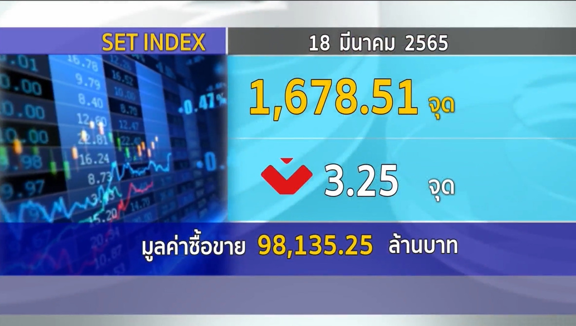 กทม. 18 มี.ค.-ตลาดหลักทรัพย์ ปิดวันนี้ที่ระดับ 1,678.51 จุด ลดลง 3.25 จุด (-0.19%) มูลค่าการซื้อขาย 98,135.25 ล้านบาท ตลาดหุ้นไทยวันนี้แกว่งตัวกรอบแคบบวกสลับลบ โดยตลาดรับปัจจัยบวกราคาน้ำมันพุ่งขึ้นหลัง IEA เตือนน้ำมันตึงตัว และ ศบค.ปลดล็อกนักท่องเที่ยวต่างชาติ