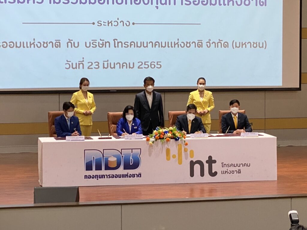 นายชัยวุฒิ ธนาคมานุสรณ์ รัฐมนตรีว่าการกระทรวงดิจิทัลเพื่อเศรษฐกิจและสังคม เป็นประธานในพิธีลงนามบันทึกข้อตกลง (MOU) การส่งเสริมความร่วมมือ ระหว่างกองทุนการออมแห่งชาติ กับบริษัท โทรคมนาคมแห่งชาติ จำกัด (มหาชน) และกล่าวย้ำว่า เพื่อรองรับแผนพัฒนาดิจิทัลเพื่อเศรษฐกิจและสังคม (พ.ศ. 2561-2580) NT จึงช่วยส่งเสริมให้ กอช. นำเทคโนโลยีมาใช้เป็นเครื่องมือให้บริการข้อมูลของภาครัฐ และการบริการสาธารณะให้มีความสอดคล้อง เพื่อเตรียมความพร้อมสู่การพัฒนาทักษะ “Digital Literacy” ที่ทุกคนเข้าใจและใช้เทคโนโลยีได้อย่างสร้างสรรค์ ปลอดภัย เป็นประโยชน์ต่อตนเองและสังคม เพื่อให้ประชาชนตระหนักรู้เรื่องการออมเงิน เพื่อสร้างหลักประกันที่มั่นคงในชีวิตของตนเอง และเป็นรากฐานของการพัฒนาประเทศในอนาคต เพื่อรับสมัครสมาชิกให้ได้ 10 ล้านคน ตามเป้าหมาย