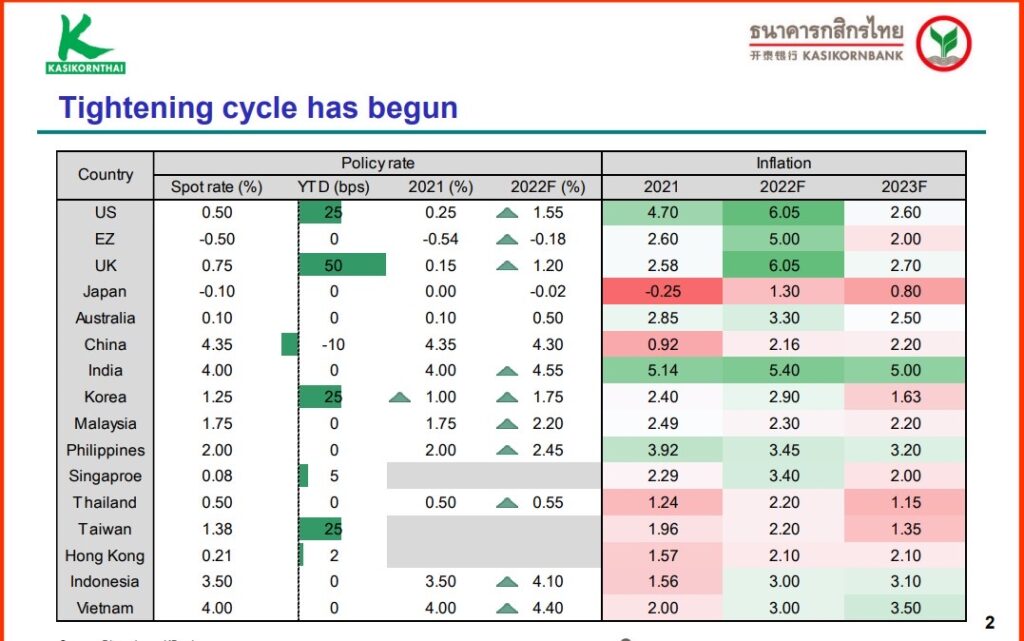 ธนาคารกสิกรไทยยึดสัมมนาในหัวข้อ “เศรษฐกิจชะลอตัวท่ามกลางเงินเฟ้อสูง (Stagflation) ในภาวะสงคราม” โดยมีวิทยากรประกอบด้วย นายกอบสิทธิ์ ศิลปชัย ผู้บริหารงานวิจัยเศรษฐกิจและตลาดทุน นางสาวกฤติกา บุญสร้าง ผู้ชำนาญการงานวิจัยเศรษฐกิจและตลาดทุน และนายสิทธิธัช พุคยาภรณ์ ผู้ช่วยผู้บริหารงานขายผลิตภัณฑ์ทางการเงิน