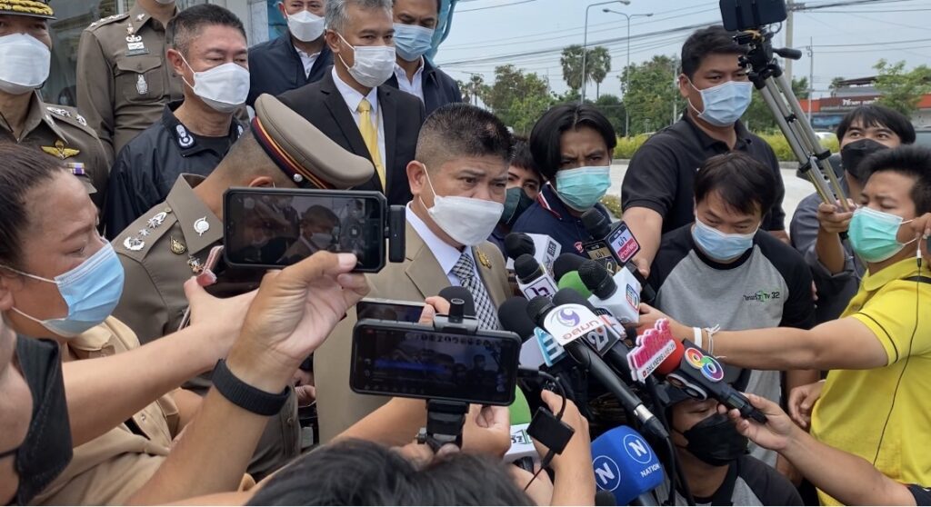 นายเสกสกล อัตถาวงศ์ ผู้ช่วยรัฐมนตรีประจำสำนักนายกรัฐมนตรี พร้อมด้วย พล.ต.ท.สุรเชษฐ์ หักพาล ผู้ช่วยผู้บัญชาการตำรวจแห่งชาติ ร่วมแถลงการเข้าตรวจค้นตามหมายค้นของศาลอาญา 2 จุด ใน 2 จังหวัด ได้แก่ บริษัท มังกรฟ้า ล็อตเตอรี่ จำกัด เลขที่ 24 ม.2 ต.อ้อมเกร็ด อ.ปากเกร็ด จ.นนทบุรี และบริษัท มังกรฟ้าฯ สาขาเมืองเลย เลขที่ 68/13-14 ถ.เลย-เชียงคาน ต.กุดป่อง อ.เมืองเลย จ.เลย โดยมีนายพชร เมสสิยาห์พร เป็นกรรมการผู้จัดการ บริษัท มังกรฟ้า จำกัด