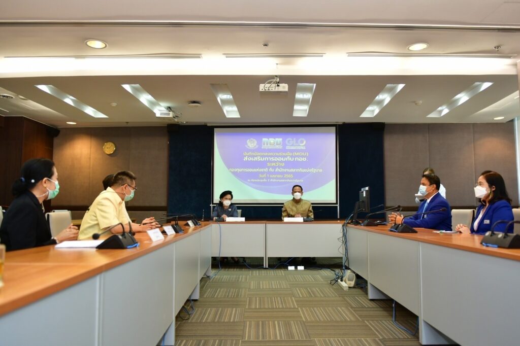 สำนักงานสลากกินแบ่งรัฐบาล จ.นนทบุรี สำนักงานสลากกินแบ่งรัฐบาล ร่วมกับ กองทุนการออมแห่งชาติ (กอช.) จัดพิธีลงนามบันทึกข้อตกลงความร่วมมือส่งเสริมการวางแผนทางการเงินเพื่อใช้ในวัยเกษียณให้แก่ผู้ค้าและตัวแทนจำหน่ายสลากกินแบ่งรัฐบาล โดยพันโท หนุน ศันสนาคม ผู้อำนวยการสำนักงานสลากกินแบ่งรัฐบาล และ นางสาวจารุลักษณ์ เรืองสุวรรณ เลขาธิการคณะกรรมการกองทุนการออมแห่งชาติ ร่วมลงนามในบันทึกข้อตกลงความร่วมมือ(MOU) ส่งเสริมการออมกับ กอช. เพื่อส่งเสริมให้ผู้ค้าสลากกินแบ่งรัฐบาล วางแผนการออมสร้างเงินบำนาญรายเดือนด้วยตนเองจากการสมัครสมาชิกและออมเงินกับ กอช. พร้อมรับเงินสมทบจากรัฐสูงสุด 100% ตามช่วงอายุไม่เกิน 1,200 บาทต่อปี