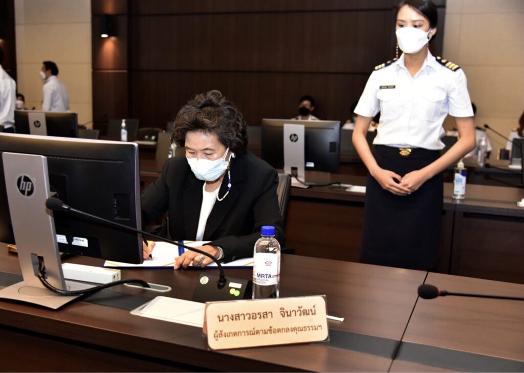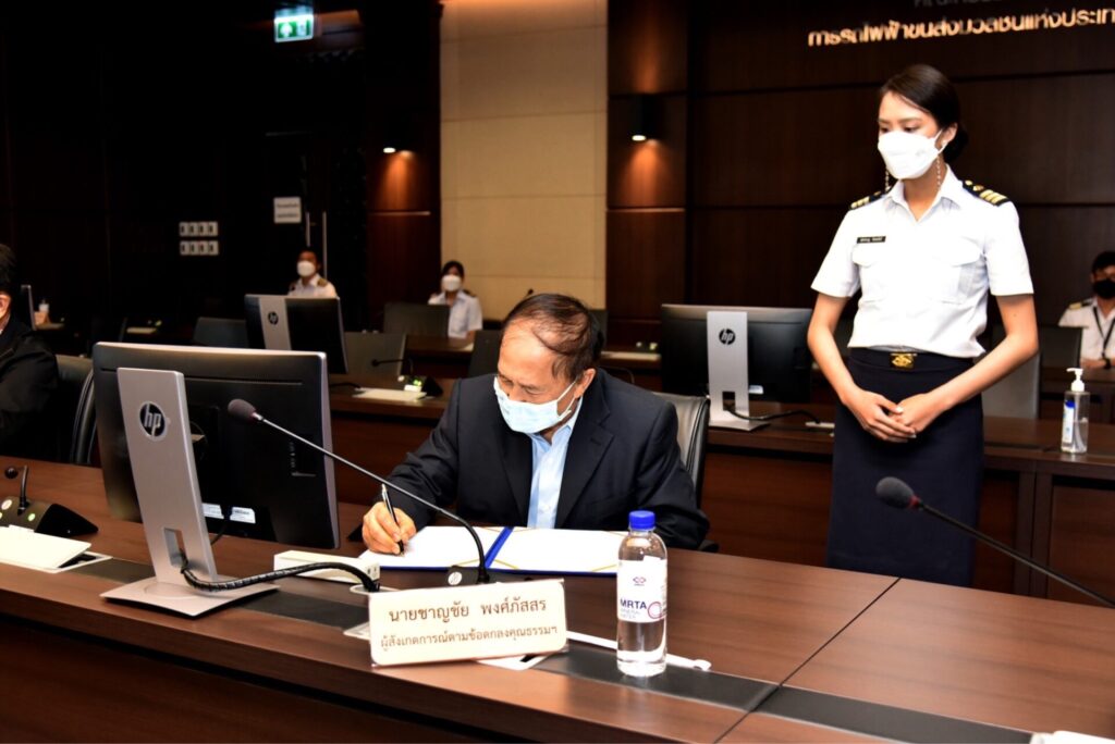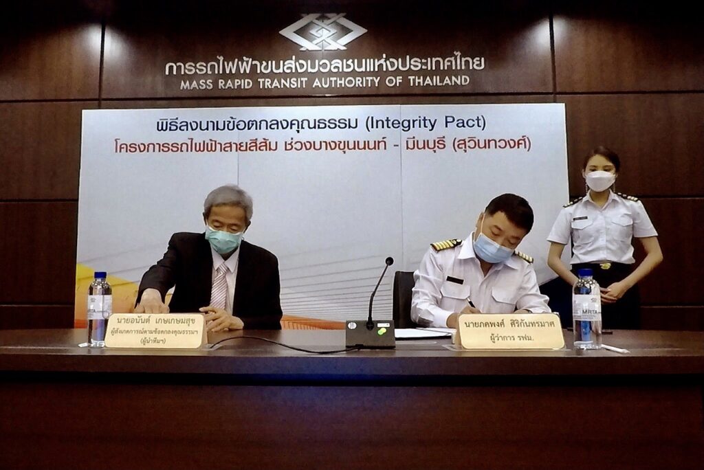 กรุงเทพฯ 4 เม.ย.- การรถไฟฟ้าขนส่งมวลชนแห่งประเทศไทย (รฟม.) จัดพิธีลงนามข้อตกลงคุณธรรม (Integrity Pact) ระหว่าง รฟม. และผู้สังเกตการณ์ ในโครงการรถไฟฟ้าสายสีส้ม ช่วงบางขุนนนท์ – มีนบุรี (สุวินทวงศ์) เพื่อความโปร่งใสและเป็นธรรม