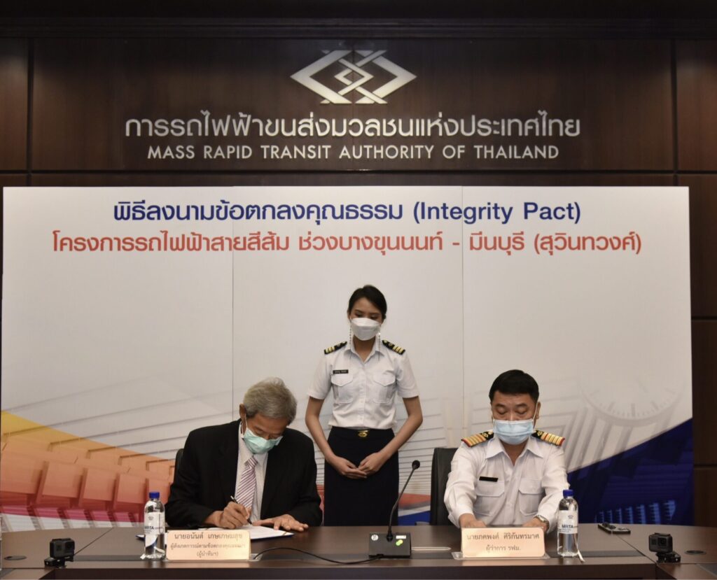 โดยการลงนามข้อตกลงฯ ในครั้งนี้ เป็นการดำเนินการตามมติคณะรัฐมนตรีเมื่อวันที่ 29 มิถุนายน 2564 ที่เห็นชอบการนำแนวทางการจัดทำข้อตกลงคุณธรรมไปกำหนดใช้โดยอนุโลม สำหรับหน่วยงานของรัฐที่ดำเนินการจัดซื้อจัดจ้างหรือการร่วมลงทุนภายใต้กฎหมายอื่นนอกเหนือจากพระราชบัญญัติการจัดซื้อจัดจ้างและการบริหารพัสดุภาครัฐ พ.ศ. 2560 ซึ่งโครงการรถไฟฟ้าสายสีส้ม ช่วงบางขุนนนท์ – มีนบุรี (สุวินทวงศ์) ต้องดำเนินการตามแนวทางดังกล่าวด้วย เนื่องจากเป็นโครงการร่วมลงทุนขนาดใหญ่ และมีผลกระทบโดยตรงต่อประโยชน์สาธารณะ