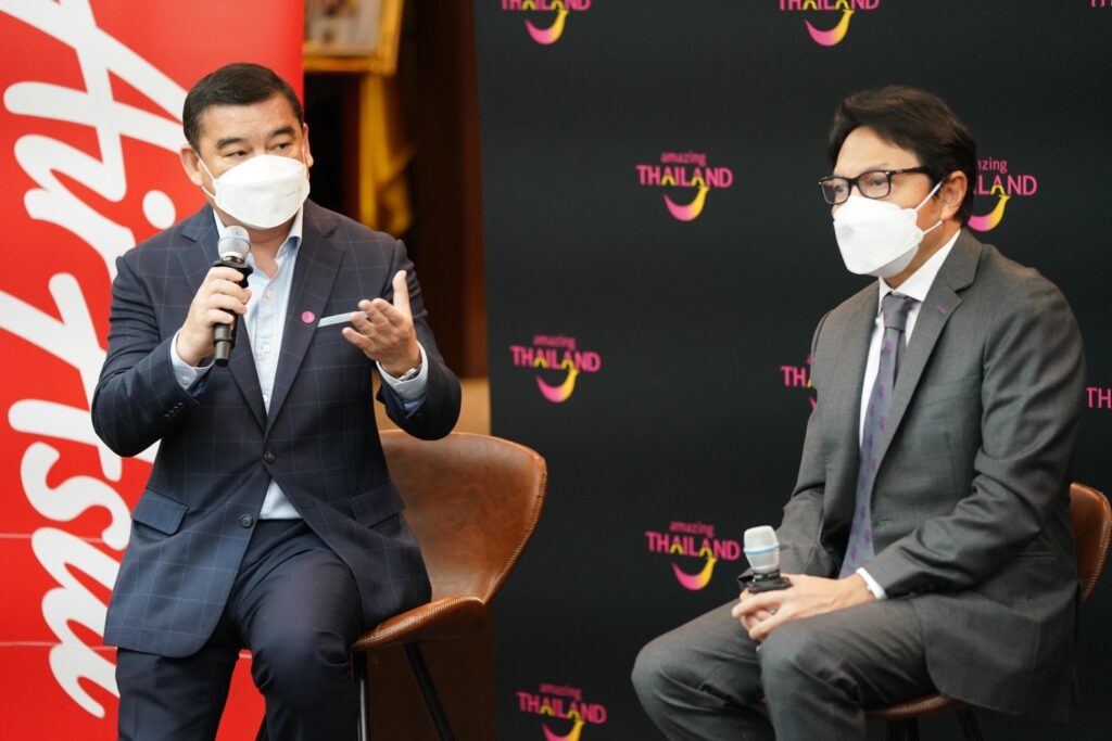 นายธเนศวร์ เพชรสุวรรณ รองผู้ว่าการ ททท. ด้านตลาดเอเชียและแปซิฟิกใต้ร่วมกับนายสันติสุข คล่องใช้ยา ประธานเจ้าหน้าที่บริหารสายการบินไทยแอร์เอเชียแถลงข่าวการดำเนินงานร่วมกันในการส่งเสริมการเดินทางของนักท่องเที่ยวจากตลาด ระยะใกล้ ที่สอดคล้องกับแผนการบินภายในภูมิภาคของแอร์เอเชีย
