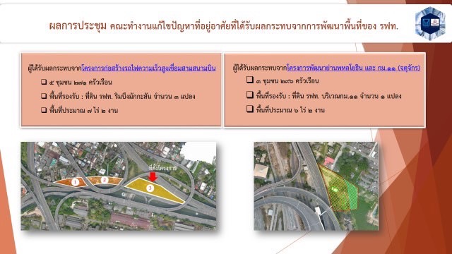 นายศักดิ์สยาม ชิดชอบ รัฐมนตรีว่าการกระทรวงคมนาคม เปิดเผยภายหลังเป็นประธานประชุมเพื่อแก้ไขปัญหา ความเดือดร้อนของประชาชน ที่ได้รับผลกระทบจากการพัฒนาพื้นที่ ที่ดินในพื้นที่ของหน่วยงานกระทรวงคมนาคมว่า ในส่วนของผลกระทบจากการพัฒนาพื้นที่ของการรถไฟแห่งประเทศไทย (รฟท.) นั้น ทาง รฟท.จะแก้ไขด้วยการก่อสร้างอาคารแนวสูง เพื่อให้ชุมชนเช่าอยู่อาศัย ในราคาสำหรับผู้มีรายได้น้อยจำนวน 2 โครงการ ได้แก่ โครงการก่อสร้างรถไฟความเร็วสูงเชื่อมสามสนามบิน พื้นที่รองรับบริเวณริมบึงมักกะสัน ประมาณ 7 ไร่ 2 งาน มีผู้ประสงค์เข้าร่วมฯ 5 ชุมชน 271 ครัวเรือน และโครงการพัฒนาพื้นที่ย่านพหลโยธิน เขตบางซื่อ และย่าน กม.11 เขตจตุจักร พื้นที่รองรับบริเวณนิคมรถไฟ กม.11 (ริมถนนกำแพงเพชร 2) ประมาณ 6 ไร่ 2 งาน