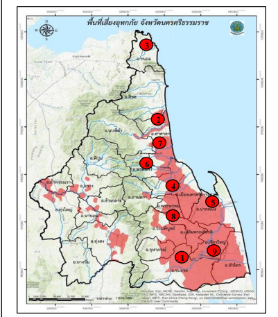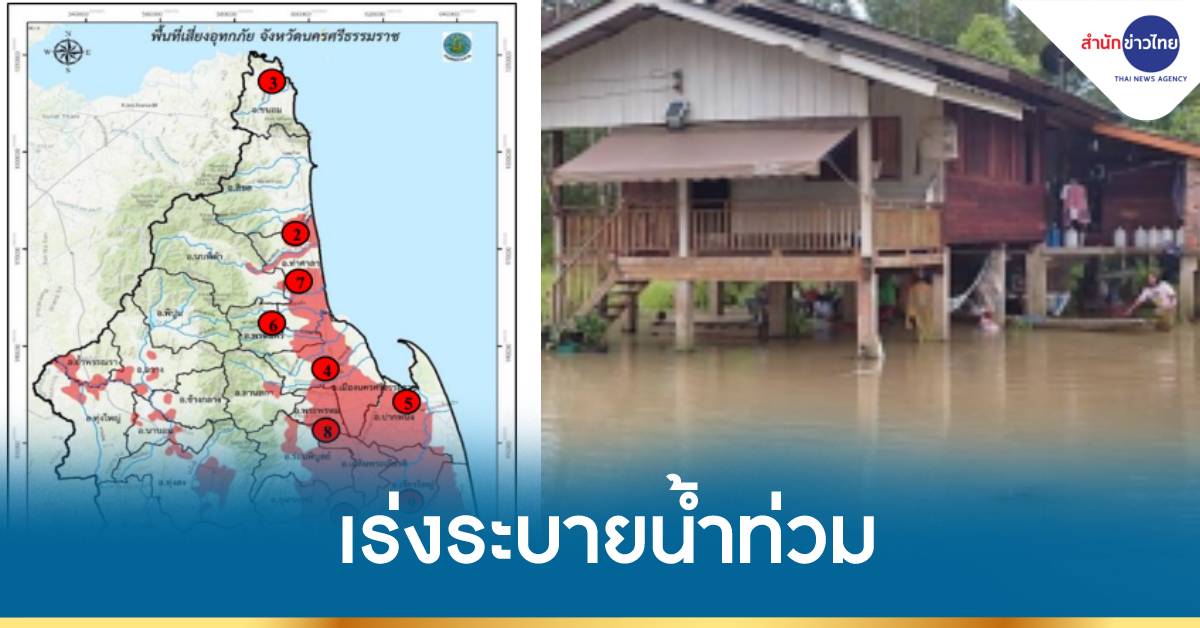 ส่วน อ.พระพรหม ต.นาสาร มีน้ำท่วมสูงประมาณ 10-20 ซม. อ.เชียรใหญ่ ต.บ้านเนิน น้ำท่วมสูงประมาณ 10-15 ซม. นอกจากนี้ที่ อ.ร่อนพิบูลย์ มีน้ำท่วมขังบริเวณแยกสามร้อยกล้า สูงประมาณ 10-15 ซม.
