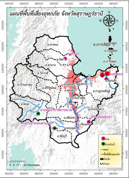 อธิบดีกรมชลประทาน กล่าวถึงสถานการณ์น้ำใน จ.สุราษฎร์ธานีว่า ฝนที่ตกหนักทำให้เกิดน้ำท่วมฉับพลัน น้ำป่าไหลหลาก ในพื้นที่จังหวัดสุราษฎร์ธานี วัดปริมาณน้ำฝนสะสม สูงสุดถึง 233.5 มม. ขณะนี้มีอุทกภัยใน 2 อำเภอ โดยท่วมที่เกษตรกรรมและบ้านเรือนของราษฎรในอ.ดอนสัก ม. 1-16 ต.ปากแพรก ม.1 ต.ไชยคราม ม.1 2 4 9 12 และ16 ต.ดอนสัก ม.4-6 ต.ชลคราม อีกอำเภอหนึ่งคือ อ.กาญจนดิษฐ์ ม.1-8 12 และ 13 ต.ท่าอุแท